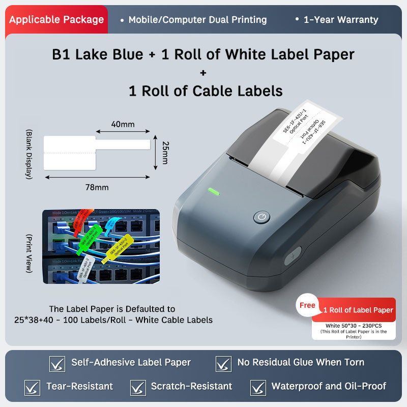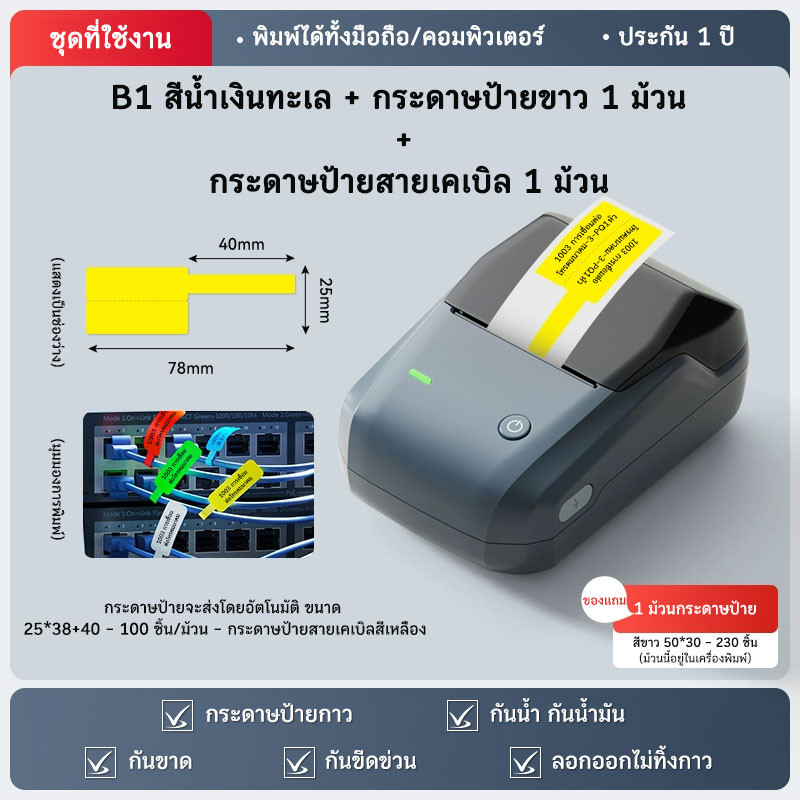 NIIMBOT B1 เครื่องพิมพ์ฉลากสายเคเบิลเครือข่าย, เครื่องพิมพ์ฉลากสายไฟสำหรับโครงการ, สติ๊กเกอร์เครื่องหมายสวิตช์