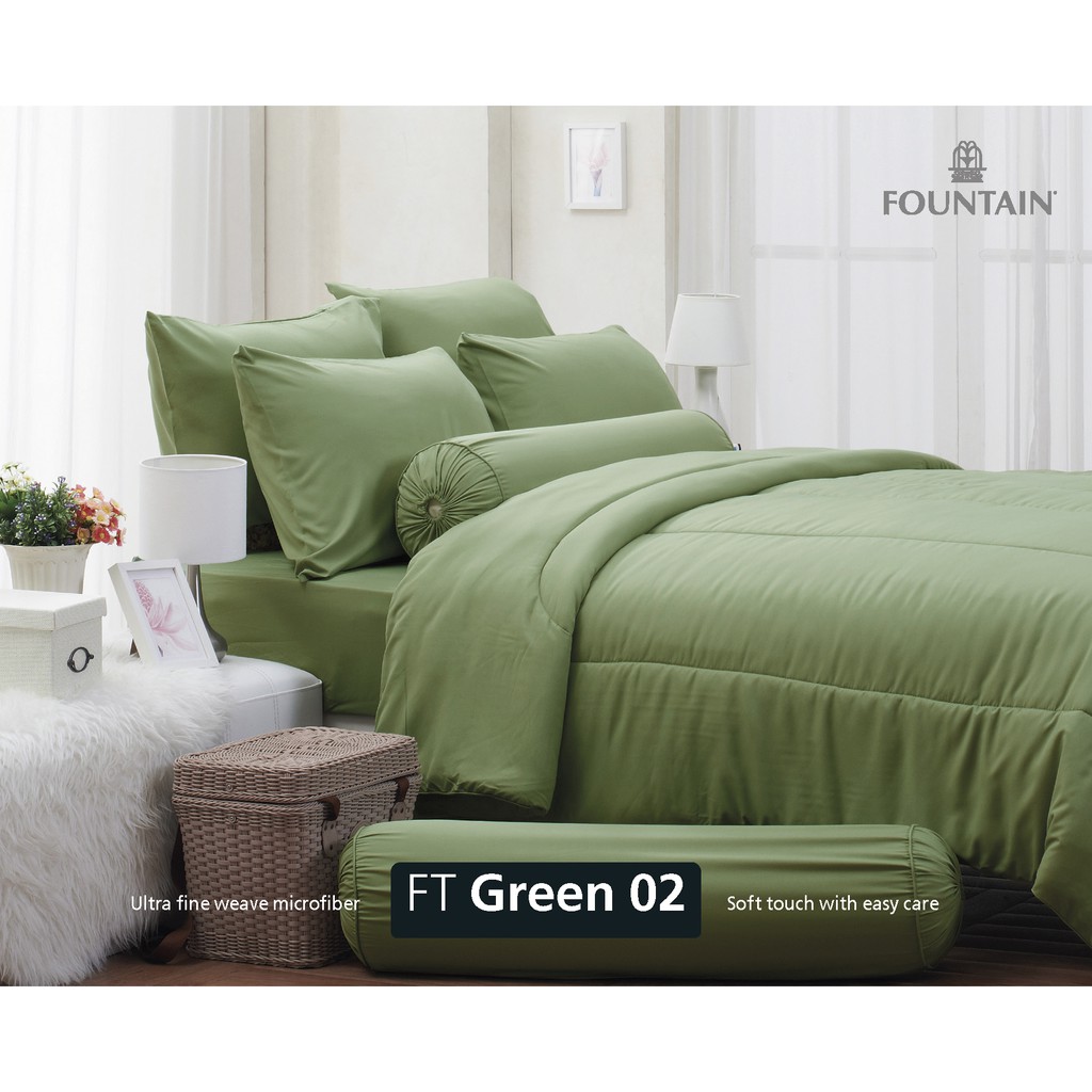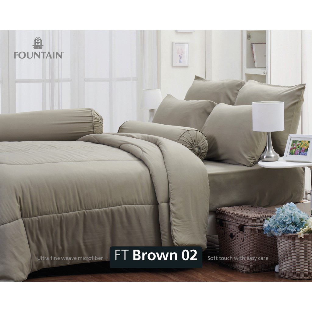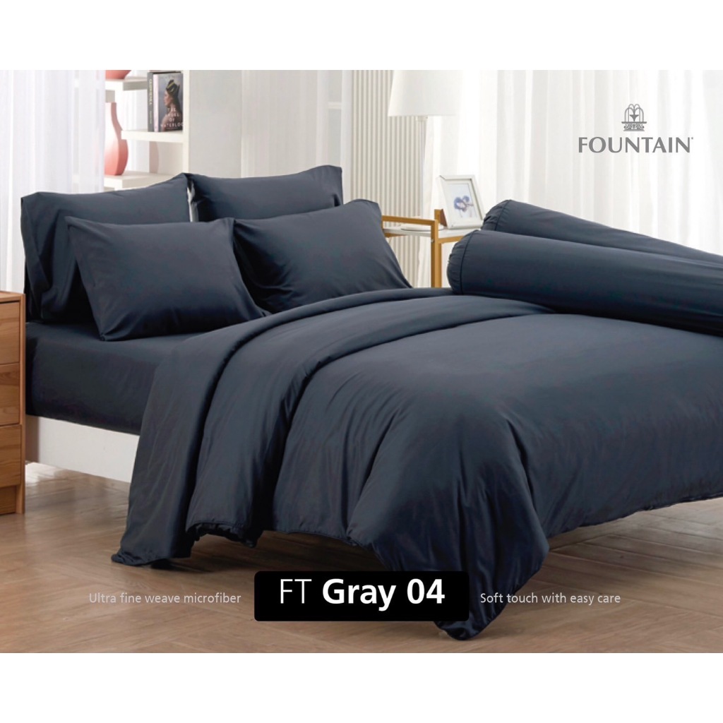 Fountain ผ้าปู ขนาด 5ฟุต 6ฟุต พร้อม ผ้านวมคู่ 90*100นิ้ว FOUTAIN ฟาวเท่น ผ้านวม ลายดอก สีพื้น แคทลียา cattleya