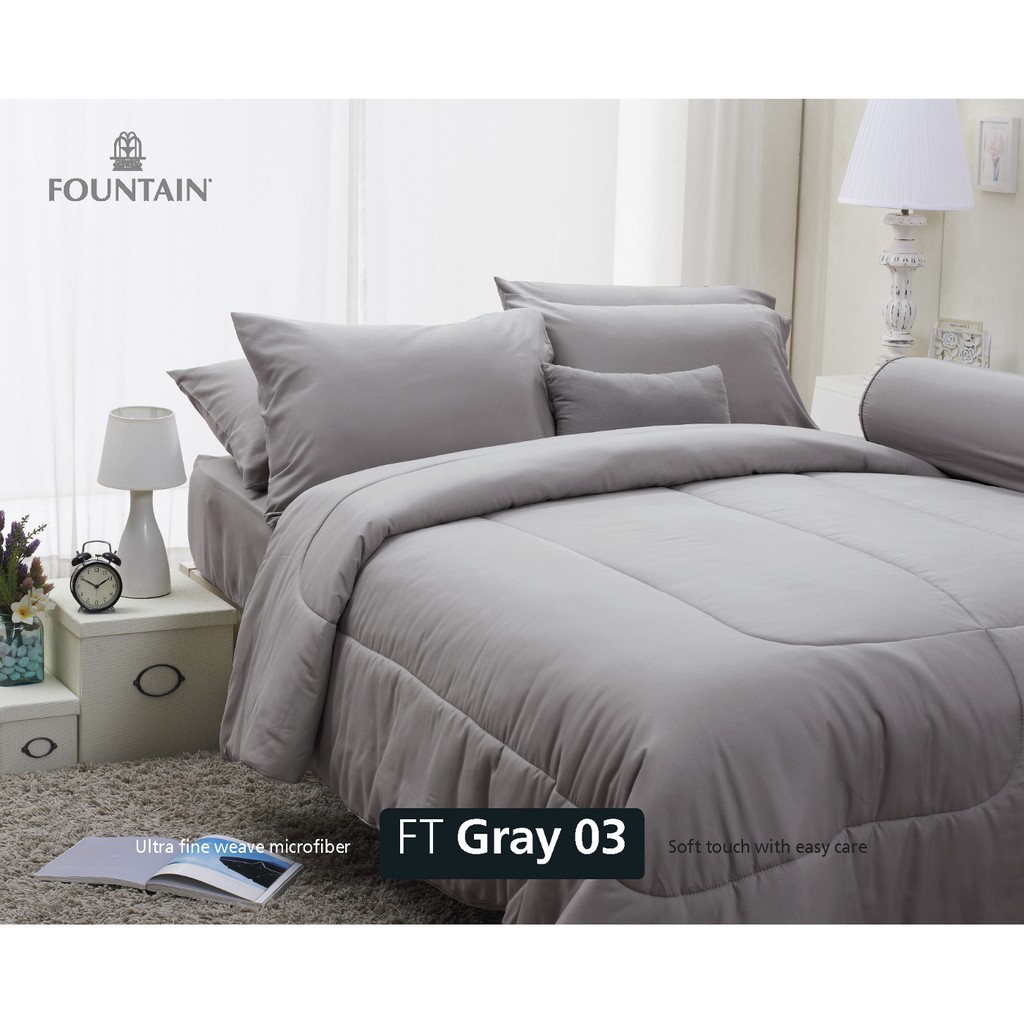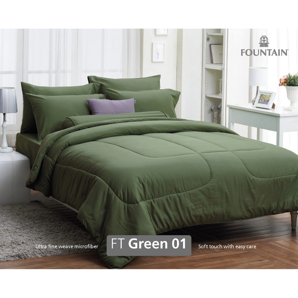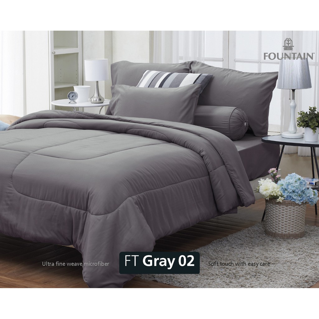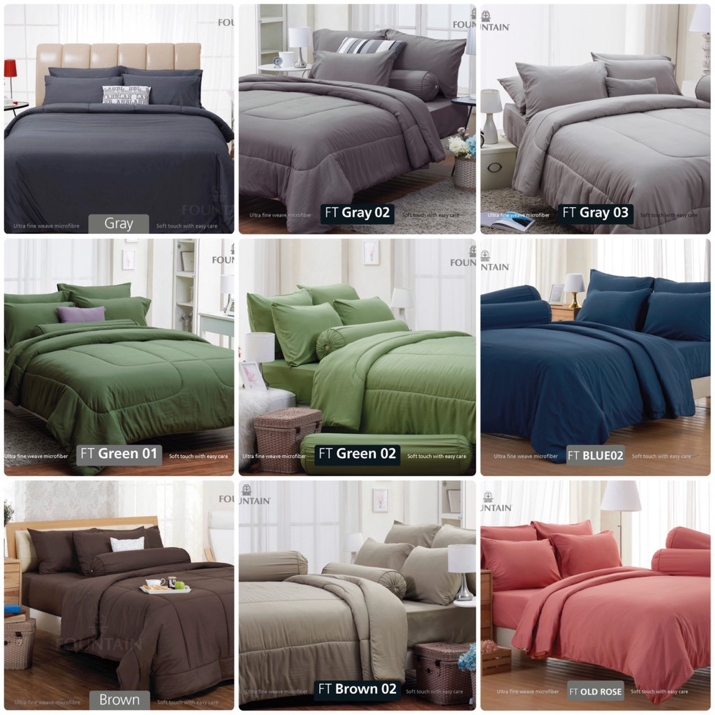 Fountain ผ้าปู ขนาด 5ฟุต 6ฟุต พร้อม ผ้านวมคู่ 90*100นิ้ว FOUTAIN ฟาวเท่น ผ้านวม ลายดอก สีพื้น แคทลียา cattleya