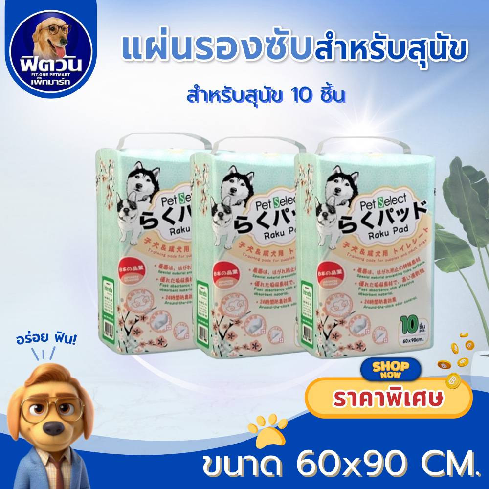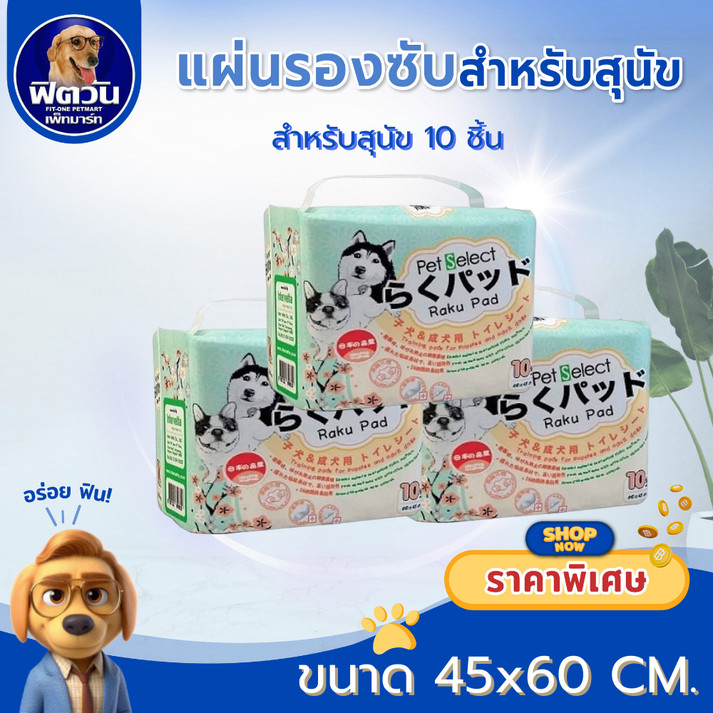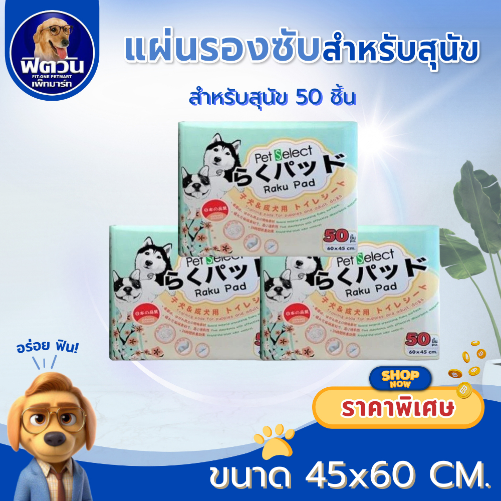 Raku Pad แผ่นรองซับสำหรับสัตว์เลี้ยง 2 ขนาด บรรจุ 10 50 ชิ้น{ผ้าอ้อม/แผ่นรอง}