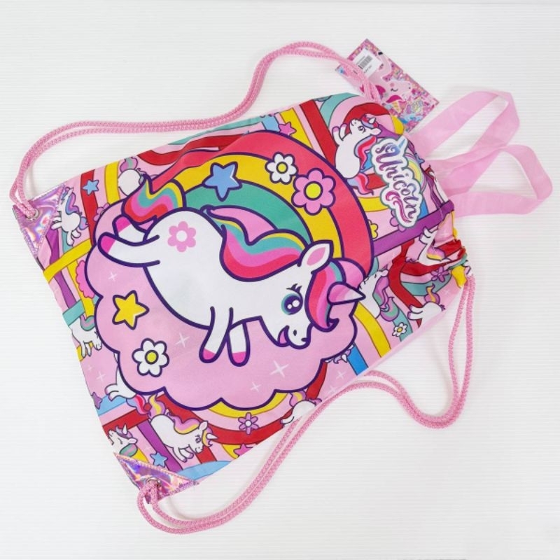 กระเป๋าถุงหูรูดใส่ชุดว่ายน้ำ หรือ เป็นเป้สะพายหลัง วัสดุกันน้ำ ขนาด 31.5*40cm ราคา 189 บาท