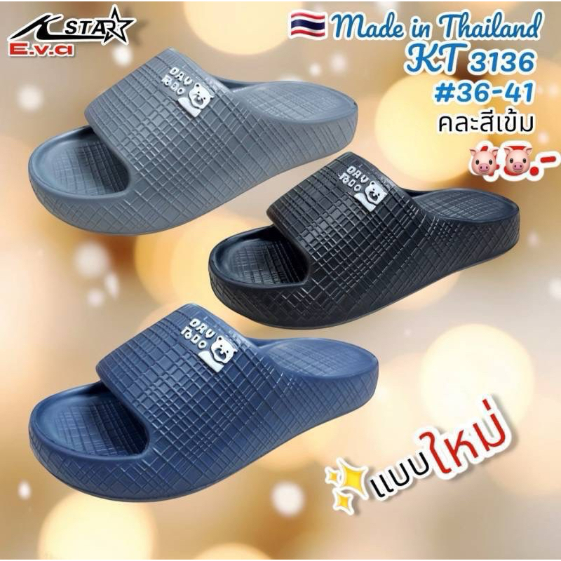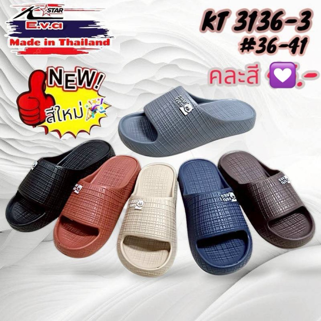 (ยกแพ็ค 6คู่) รองเท้าแตะ K-star3136 พื้นEVA พื้นหนา คละสี36-41