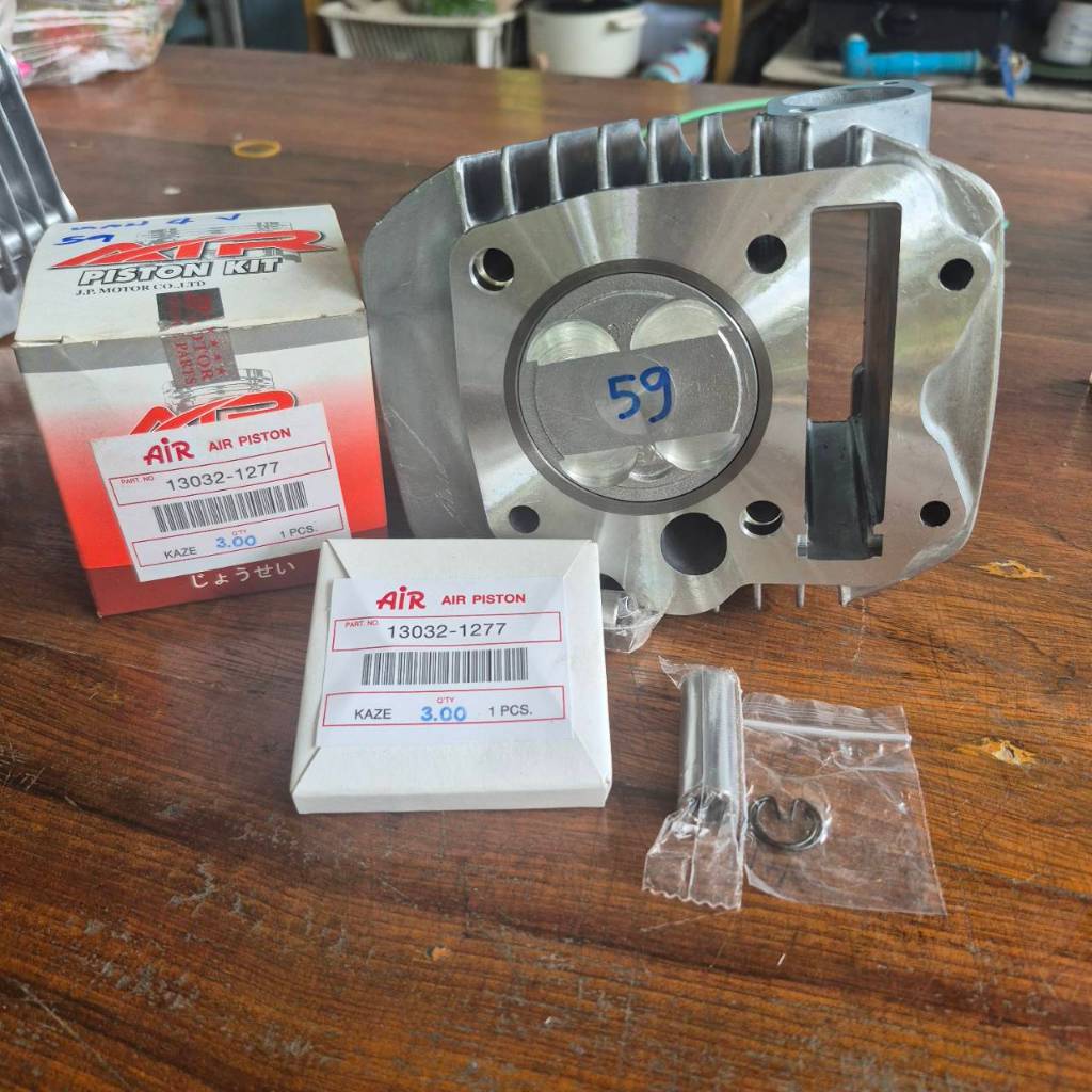 ชุดเสื้อสูบเวฟ 125 ไฟเลี้ยวบังลมลูกสูบคาเซ่แท้ 59 มิล หลบ 4วาล์วสลัก 13 เสื้อสูบปลอกแข็งพิเศษ