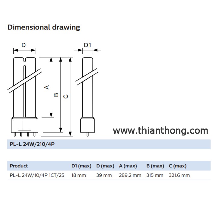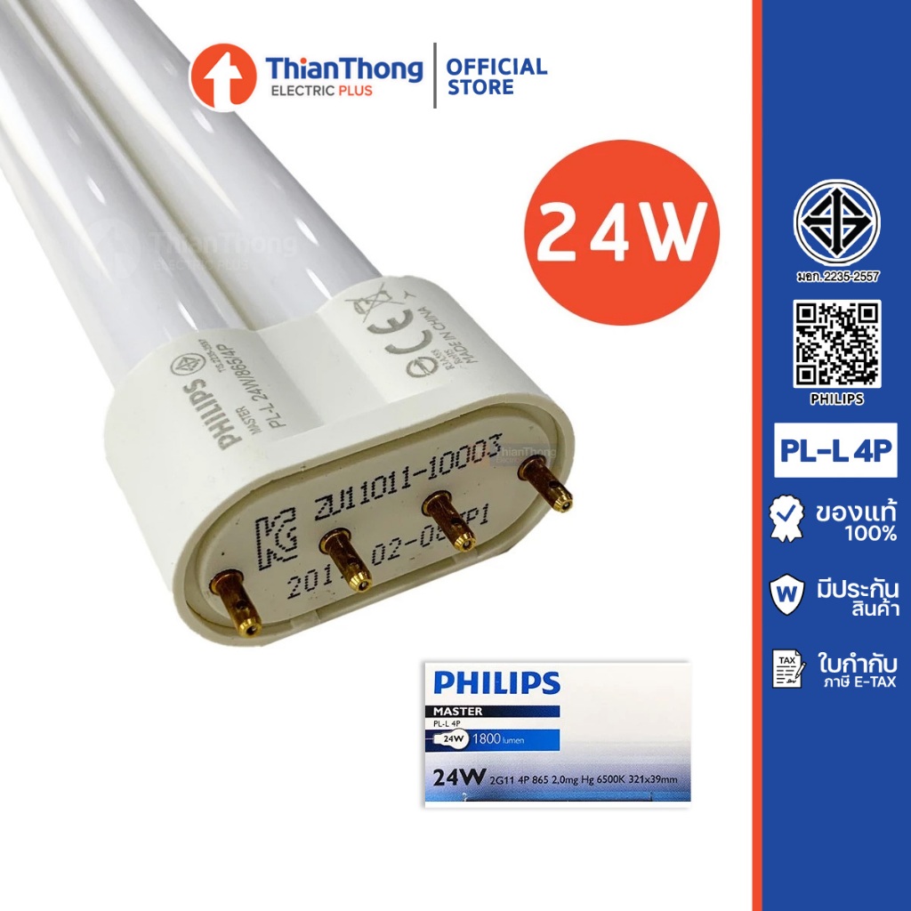 Philips หลอดตะเกียบ 4 ขา PLL/PL-L 24W 2G11 4P 865 แสงขาว