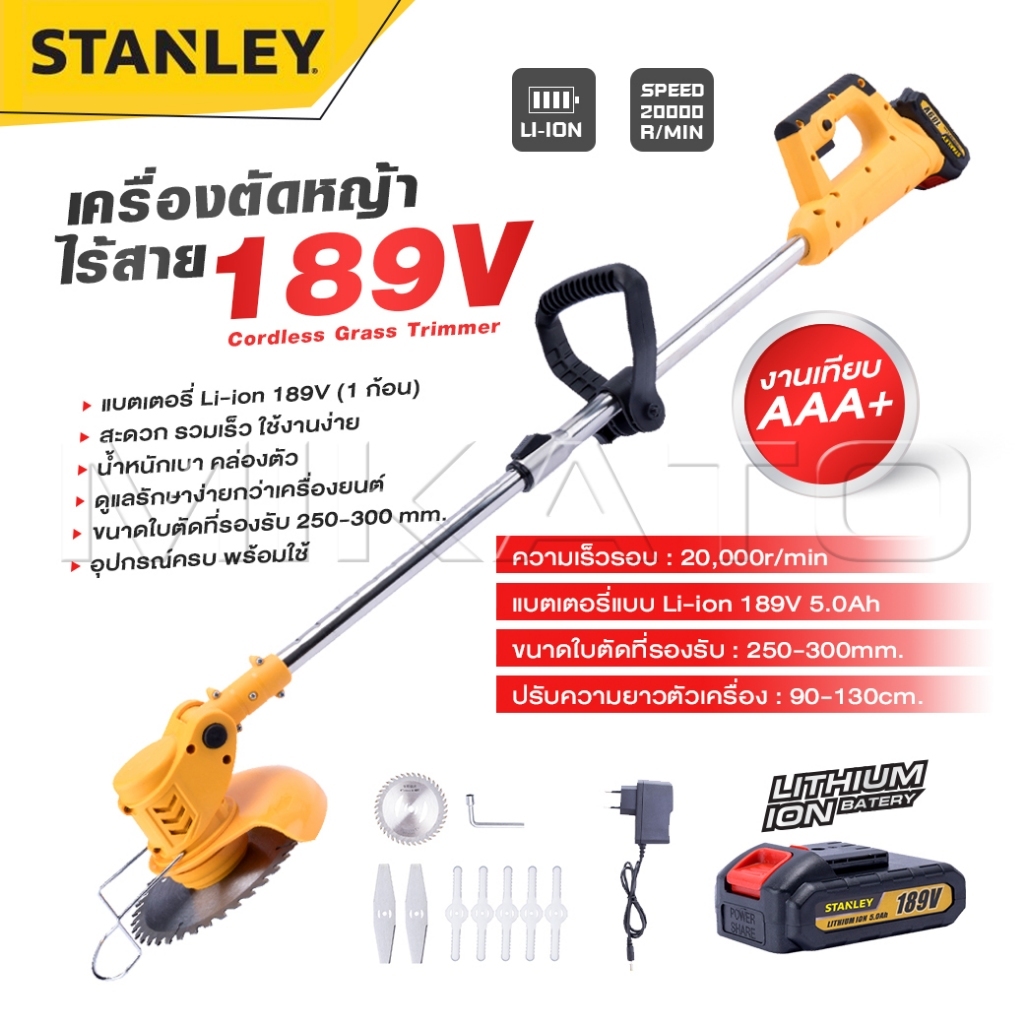 STANLEY Cordless Grass Trimmer เครื่องตัดหญ้าไร้สาย เครื่องเล็มหญ้า รุ่น 189V -งานเทียบ เกรด AAA+ ถูกมาก