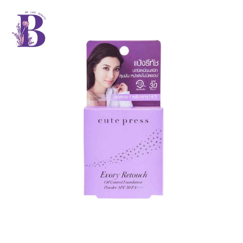 (แป้งพัฟ) Cute press Evory Retouch 5g #แป้งรีทัช ออยล์ คอนโทรล ฟาวเดชั่น SPF30 PA+++ สีม่วง