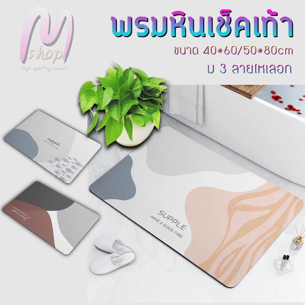 พรม พรมเช็ดเท้า พรมปูห้องน้ำ พรมปูพื้น ทรงสี่เหลี่ยม ซึมซาบน้ำดี มี 3 ลายให้เลือก ขนาด40*60/50*80CM