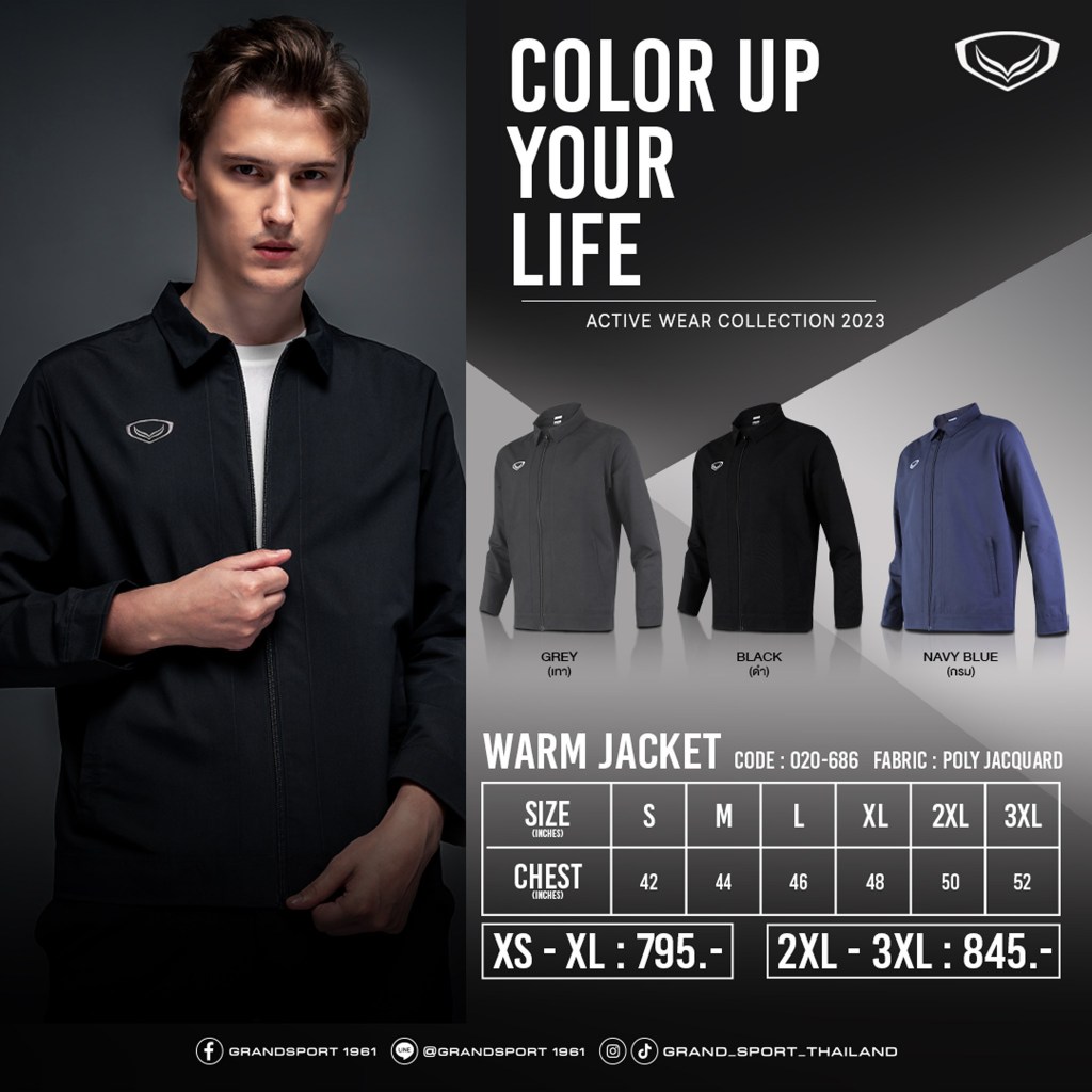 **ลดแล้วลดอีก30%** GRAND SPORT รหัส 020686 แกรนด์สปอร์ต เสื้อแจ็คเก็ตตัดต่อ ของแท้100%