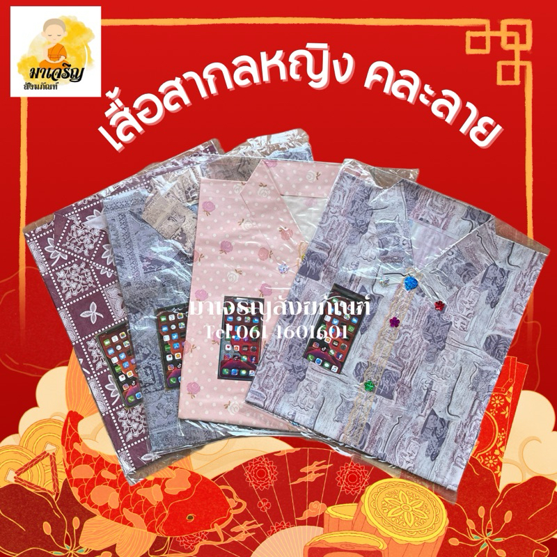 เสื้อเชิ้ตไหว้บรรพบุรุษตรุษจีน คละลาย แบบถุง