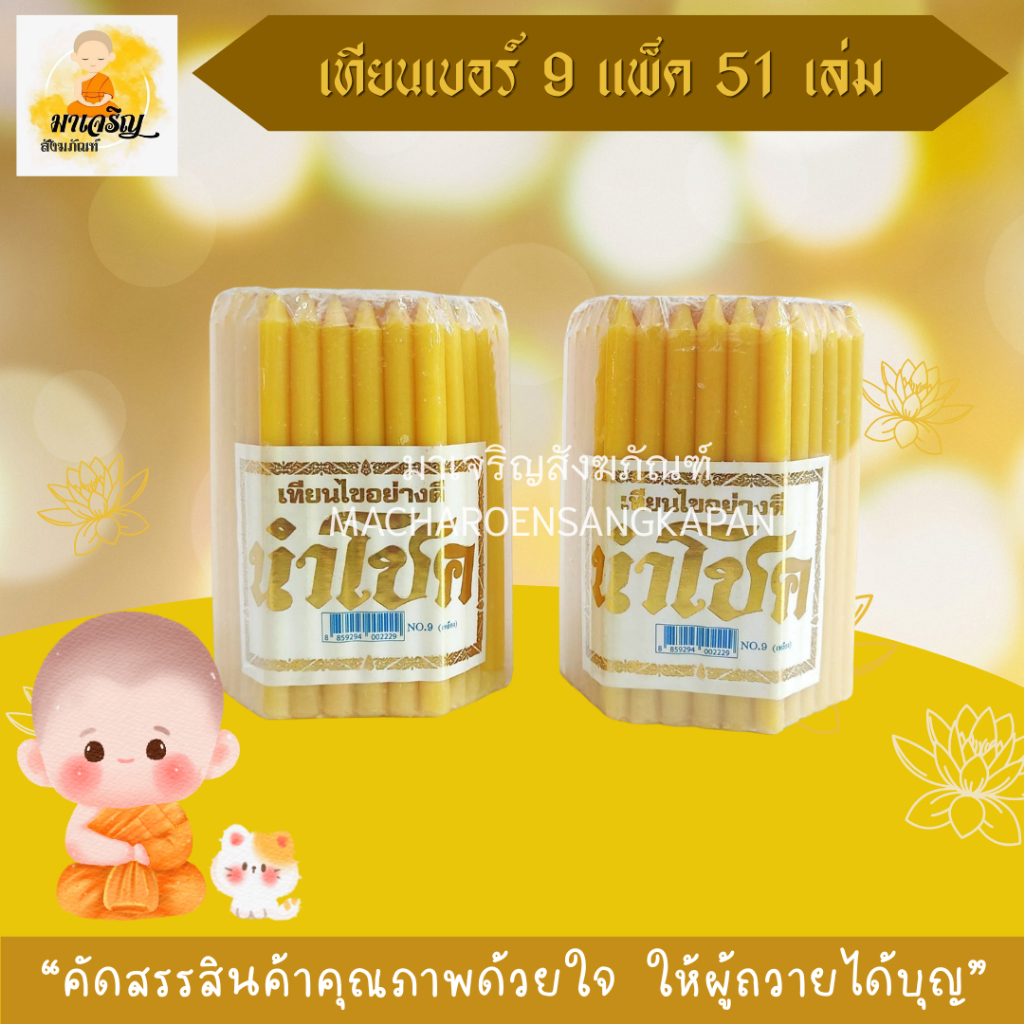 เทียนเบอร์ 9 แพ็ค 51 เล่ม สีเหลือง (บรรจุ 1 ห่อ)