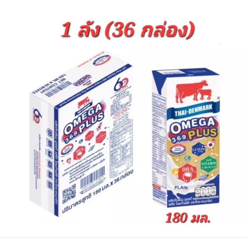 นมไทยเดนมาร์ค วัวแดง โอเมก้าพลัส นมยูเอชที ขนาด 180 มล.Omega 369 plus (1 ลัง 36กล่อง)