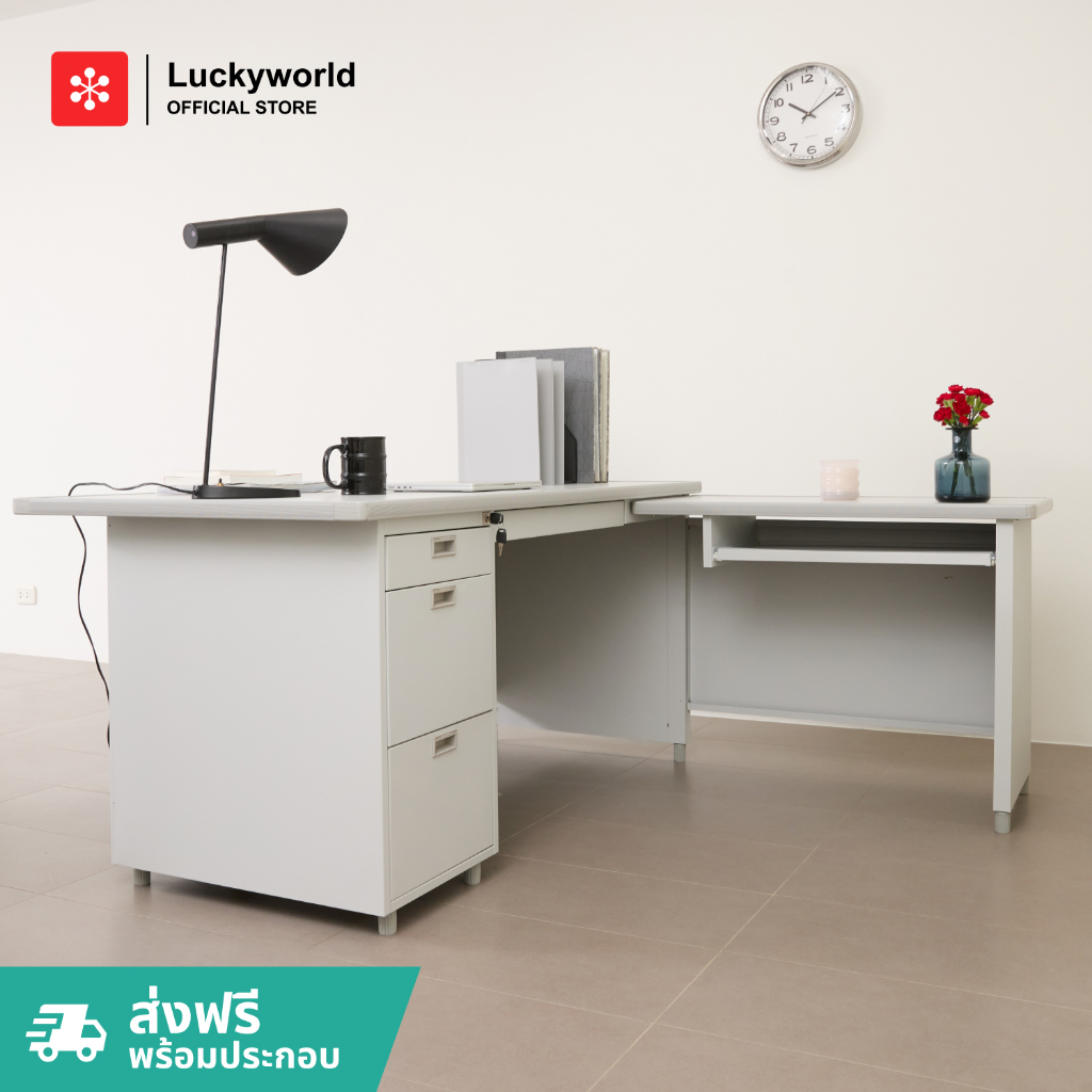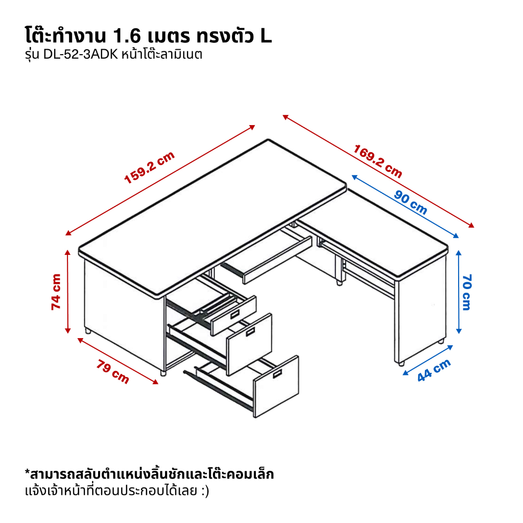 Luckyworld โต๊ะทำงาน 1.6 เมตร รุ่น DL-52-3ADK หน้าโต๊ะลามิเนต โต๊ะคอม ตัวตัวแอล