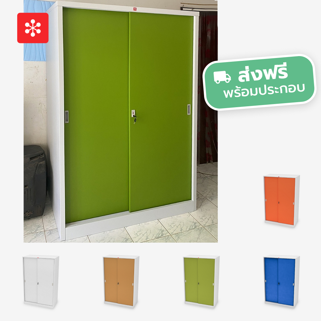 Luckyworld ตู้เสื้อผ้าเหล็ก บานเลื่อนทึบสูง กว้าง120ซม. ลึก 62ซม. ส่งฟรีพร้อมประกอบ KSS-126K