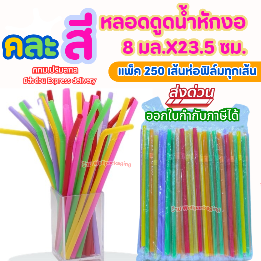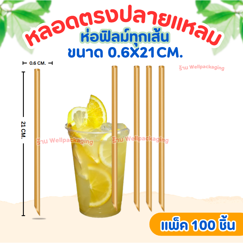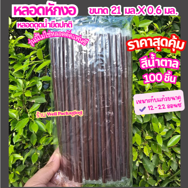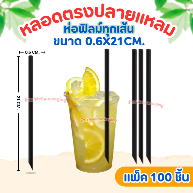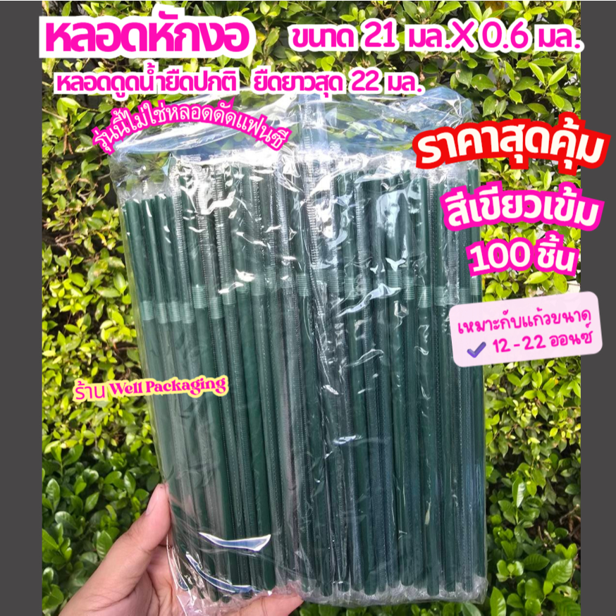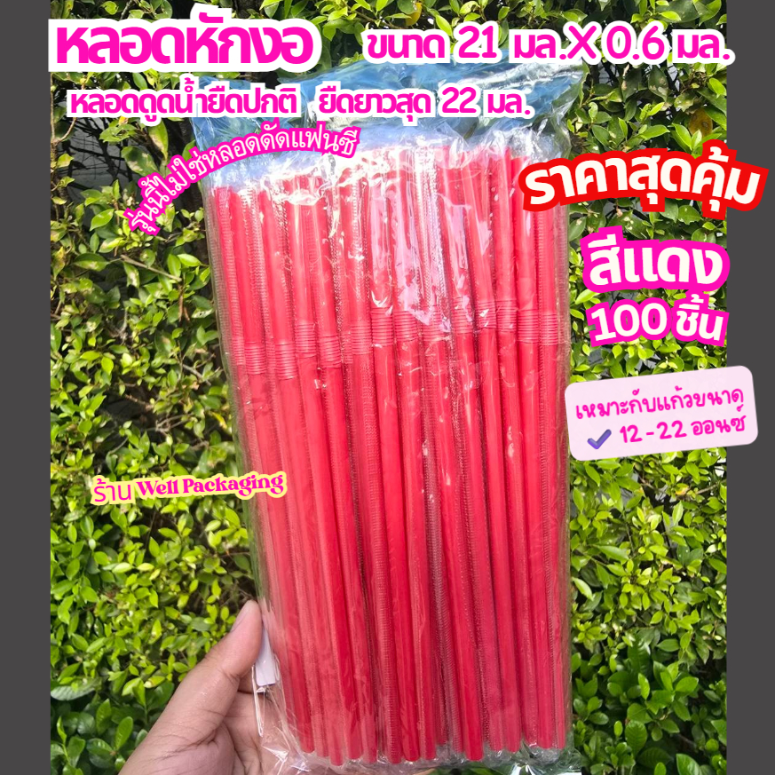 (ส่งในไทย)หลอดดูดน้ำหักงอ ห่อฟิลม์ 21X0.6 มล.แพ็ค 100ชิ้น