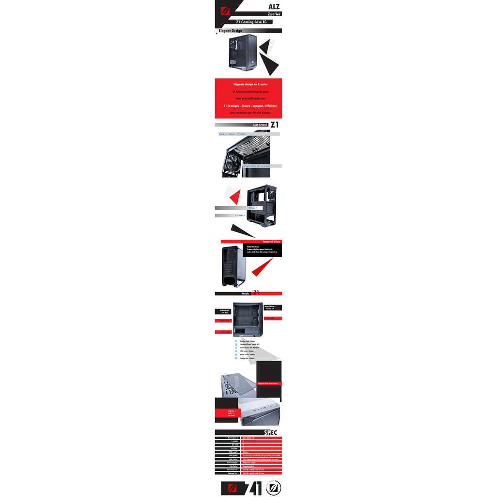 (Clearance : กล่องชำรุด / สินค้าใหม่ 100% ประกันเต็ม 1 ปี) ALZ Z1 ATX TG Windows Case / เคส