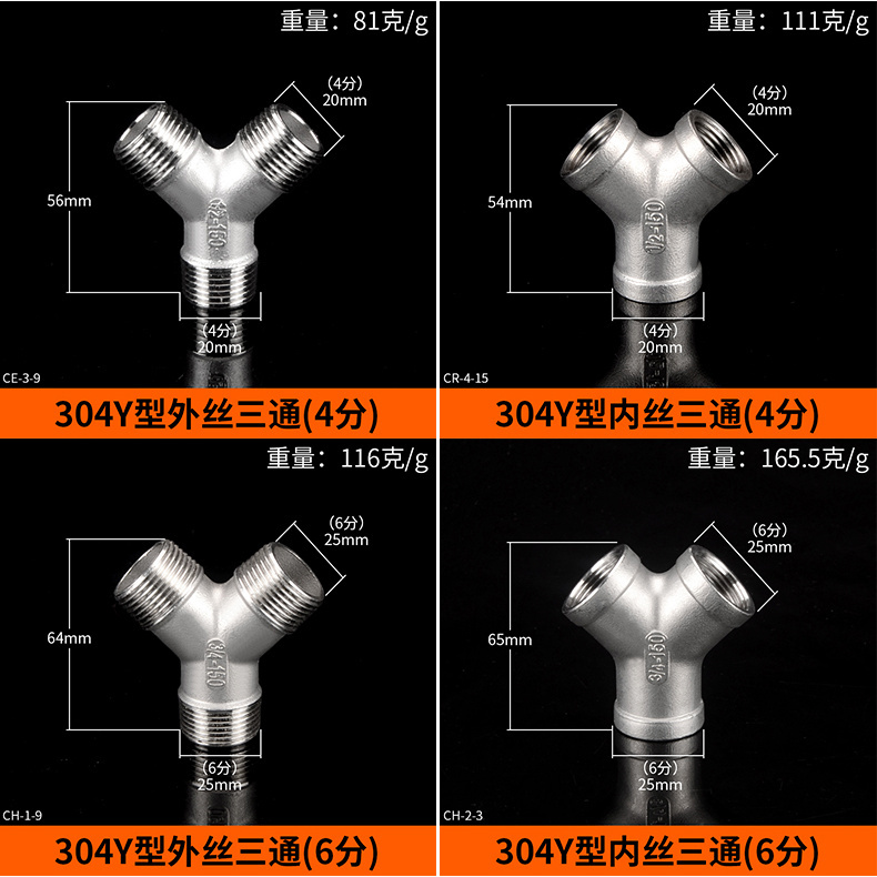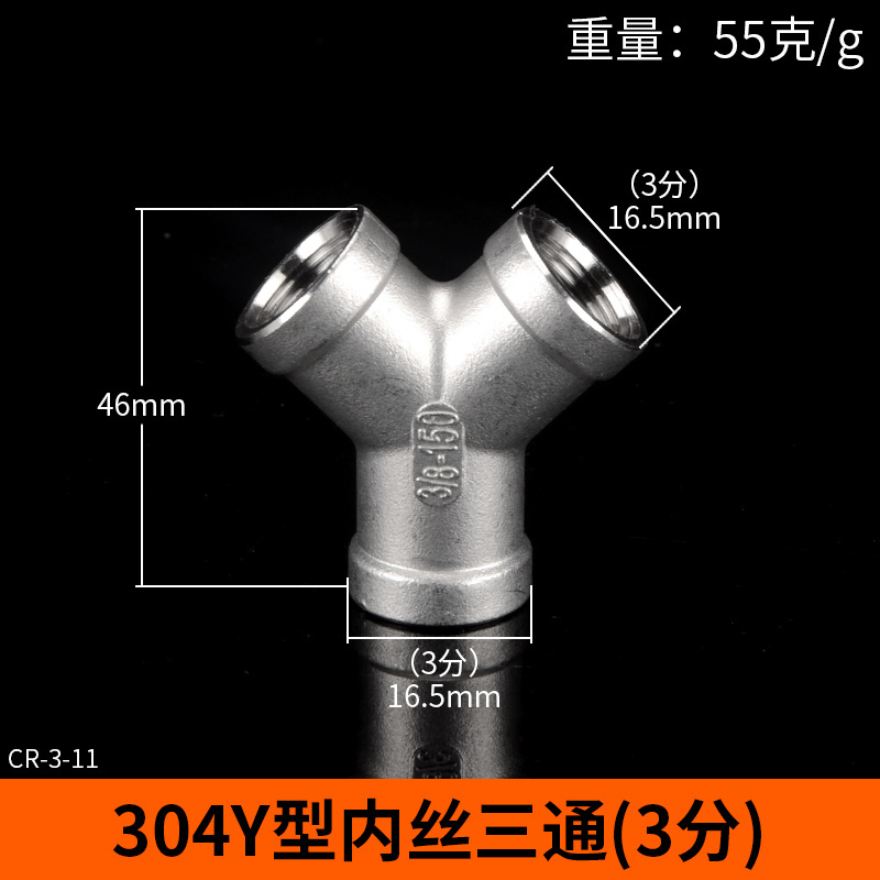 304 สแตนเลส Y-Type Tee ด้านในด้านนอกลวด Joint เครื่องทําน้ําอุ่นท่อน้ําเข้าอุปกรณ์แก๊สหนา [XHY]