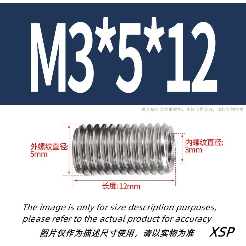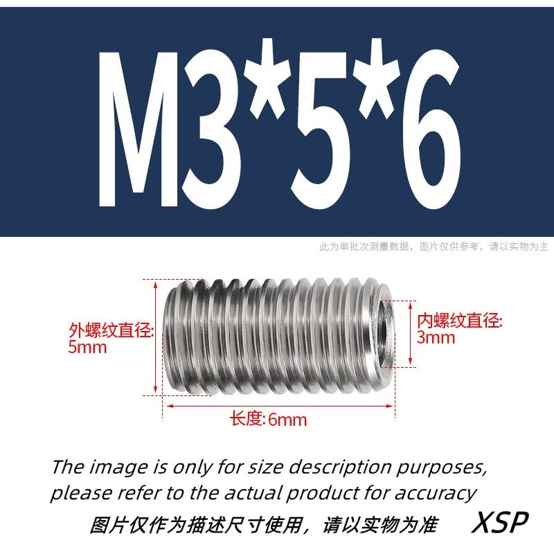 ปลอกสวมเกลียว แปลงเกลียว ปรับขนาดเกลียว ตัวผู้ สแตนเลส 304 เกลียวมิล หยาบ M2M2.5M3M4M5M6 / Screw Thread Adapter SUS304【STH】