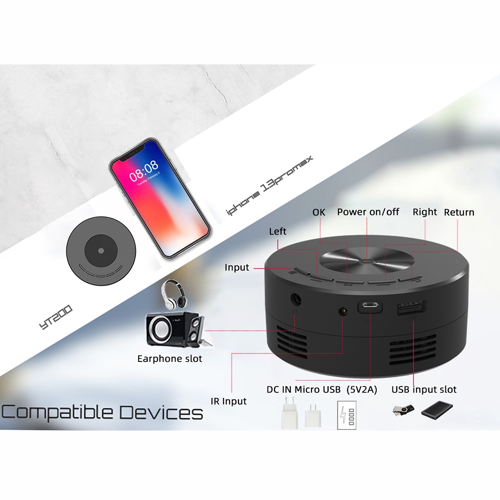 โปรเจคเตอร์ LED 320x180P ขนาดเล็ก แบบพกพา พร้อมหน้าจอกระจก เครื่องเล่นมีเดีย สําหรับเด็ก