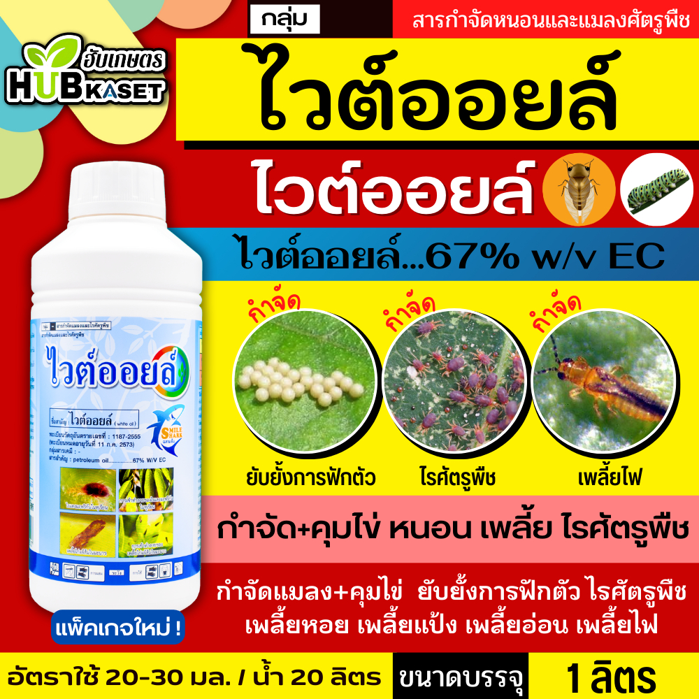 ไวต์ออยล์ 1ลิตร (ไวต์ออยล์) ป้องกันเพลี้ยหอย เพลี้ยไฟ เพลี้ยแป้ง เพลี้ยไก่แจ้ส้ม ไรแดง แมลงหวี่ขาว