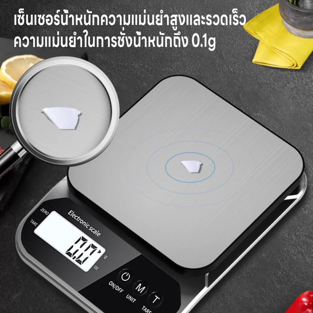 เครื่องชั่งอาหาร ระบบดิจิตอล 0.1g-3kg/1g-10kg เครื่องชั่งในครัว ปรับได้2หน่วย จอLED กันน้ำจับเวลาได้ แถมถ่านAAA2ก้อน