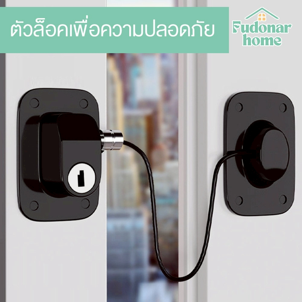 Fudonar ตัวล็อกเพื่อความปลอดภัยแบบกุญแจล็อก สายเหล็กกันตัด ติดตั้งง่าย ไม่ต้องเจาะ