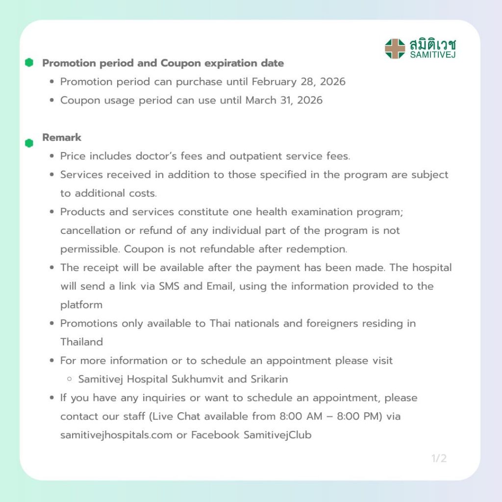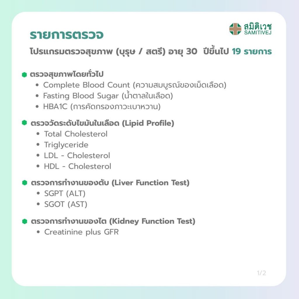 [E-Coupon] โปรแกรมตรวจสุขภาพ Health Plus สำหรับชายหรือหญิง 19 รายการ อายุ 30 ปีขึ้นไป สมิติเวชสุขุมวิท ศรีนครินทร์