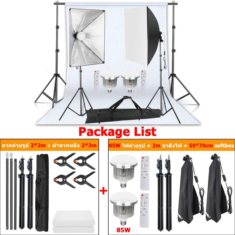 85W/300W ไฟถ่ายรูป ไฟไลฟ์สด ไฟสตูดิโอ & ฉากถ่ายรูป 2x2m ผ้าฉากหลัง 2x3m Green Screen Photography Studio Lighting Kits