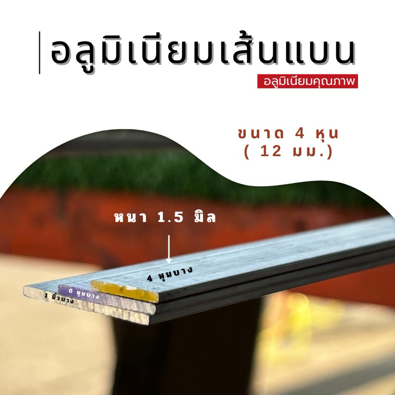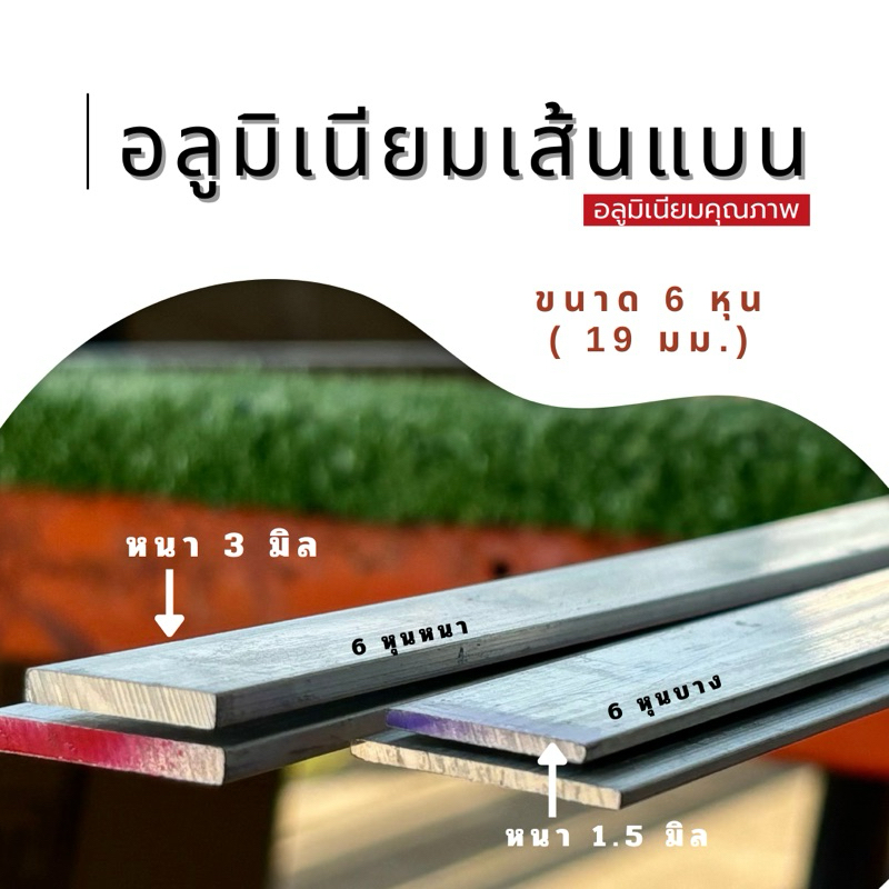 เส้นแบนอลูมิเนียม ขนาด 4 หุน 6 หุน และ 1 นิ้ว ขนาดยาว 1 เมตร