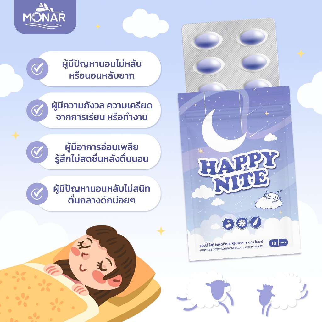 โปร 1แถม1 ✅หลับสนิท ผ่อนคลาย คลายเครียด✅ Happy Nite ช่วยให้นอนหลับ วิตามินเพิ่มประสิทธิภาพในการนอน หลับเต็มอิ่ม นอนง่าย