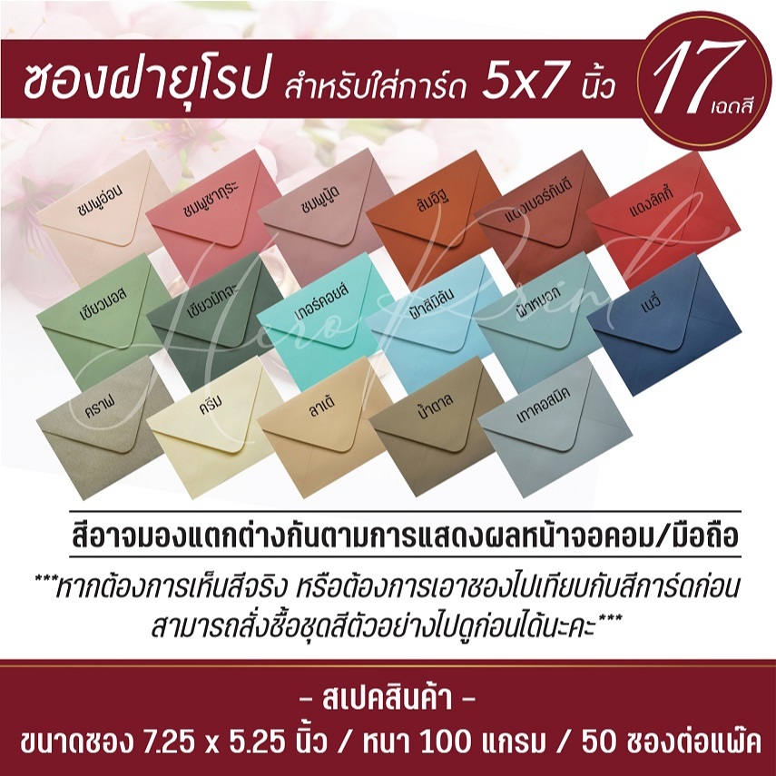 (เขียวมอส#29) ซองฝายุโรป ซองใส่การ์ด 5x7 นิ้ว (50 ซอง) หนา 100 แกรม ใช้กับการ์ดงานแต่ง บวช หรือการ์ดพิธีต่างๆ