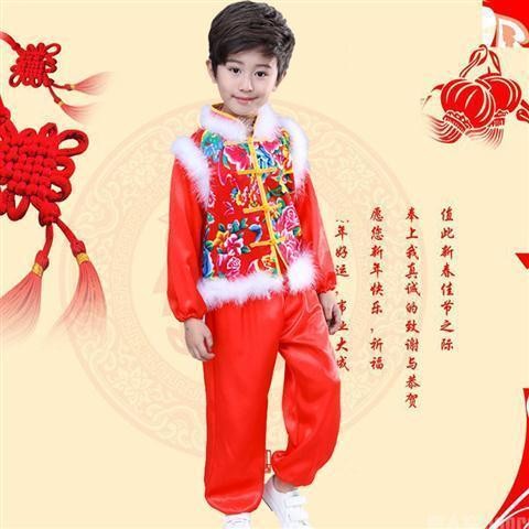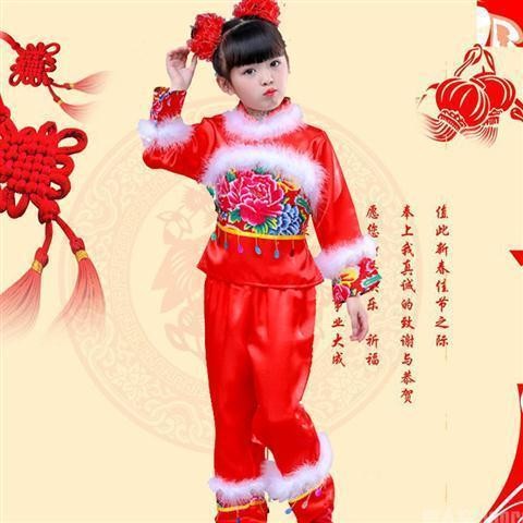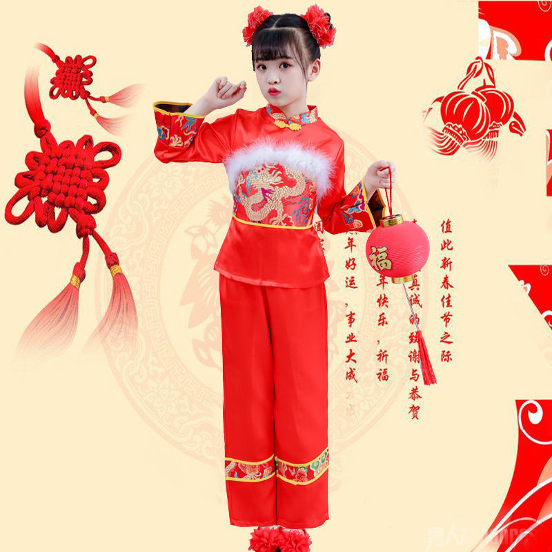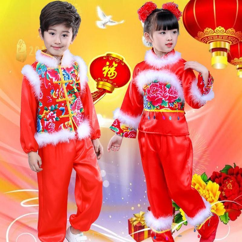 【พร้อมส่งในจีน】ชุดตรุษจีน ปีใหม่ สีแดง ชุดการแสดง ยังโก ชุดเต้นรํา สำหรับเด็กผู้หญิงและเด็กผู้ชาย