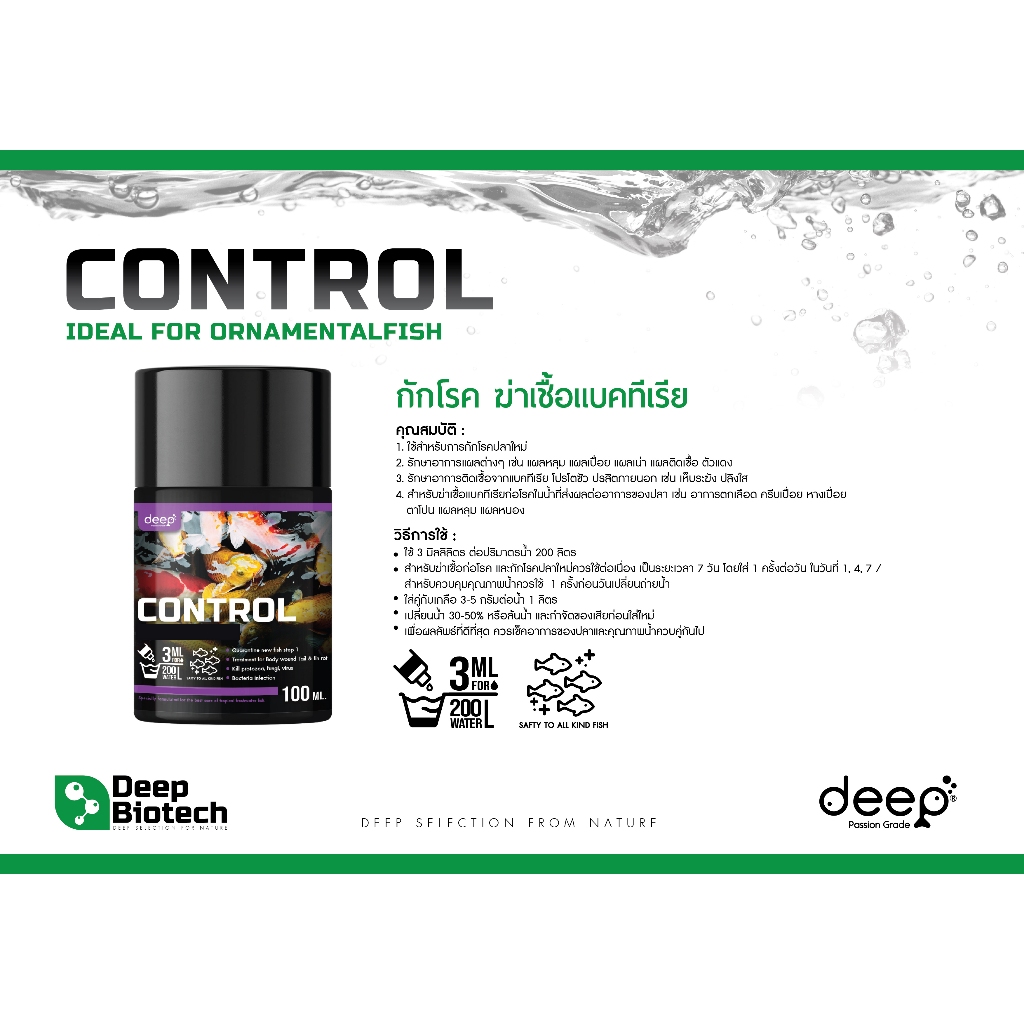 Deep Biotech Control ดีพ น้ำยากักโรคและฆ่าเชื้อแบคทีเรีย รักษาแผลปลา ปลาครีบเปื่อย ขนาด 100 ml.
