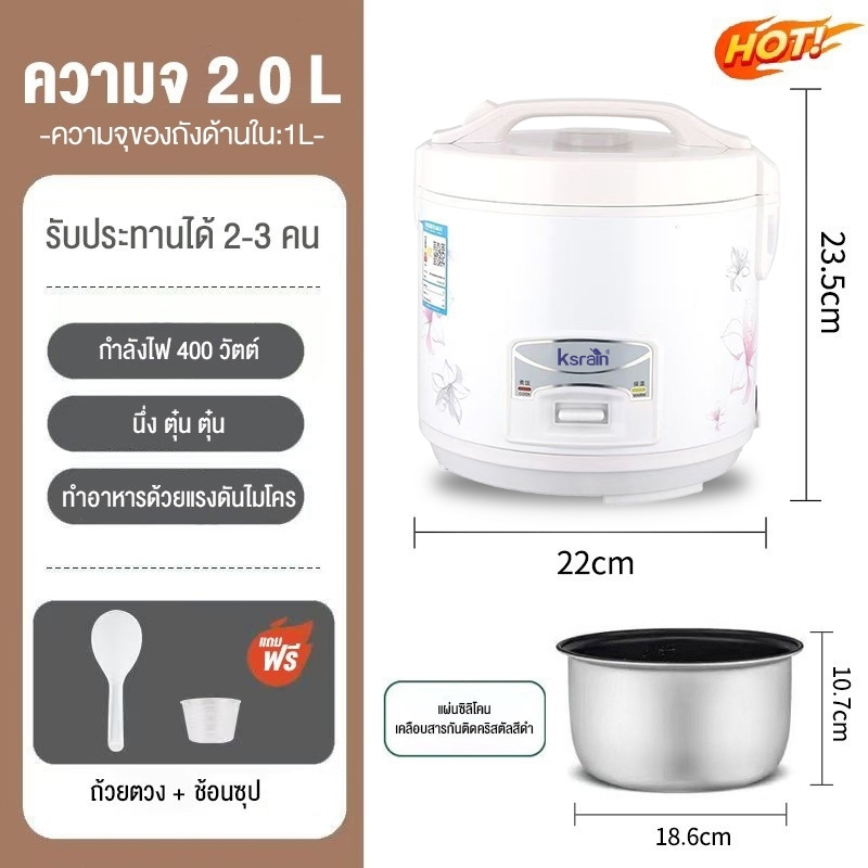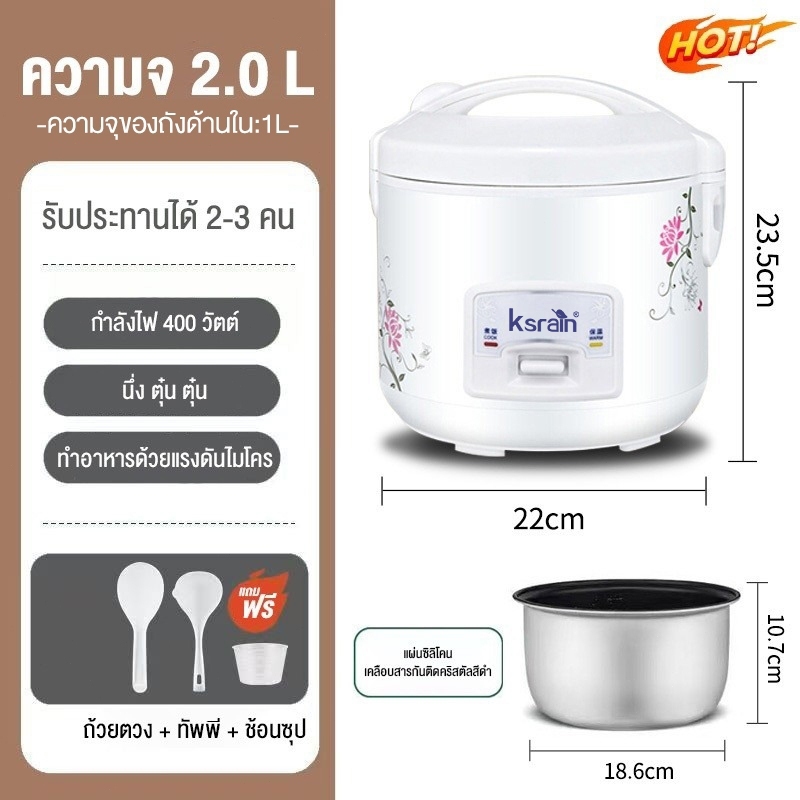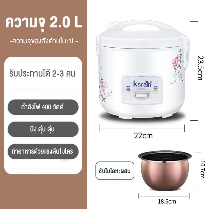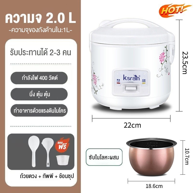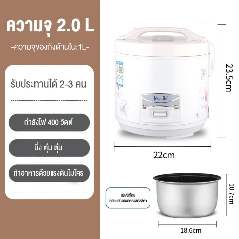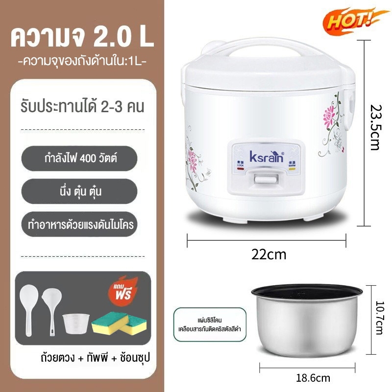 Ksrain หม้อหุงข้า ว หม้อหุงข้าวถูกๆ หุงข้าวเล็ก หม้อหุงข้าวไฟฟ้า ขนาด 2 ลิตร อุ่นทิพย์ รุ่น Rice cooker
