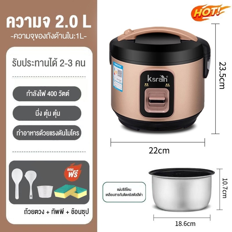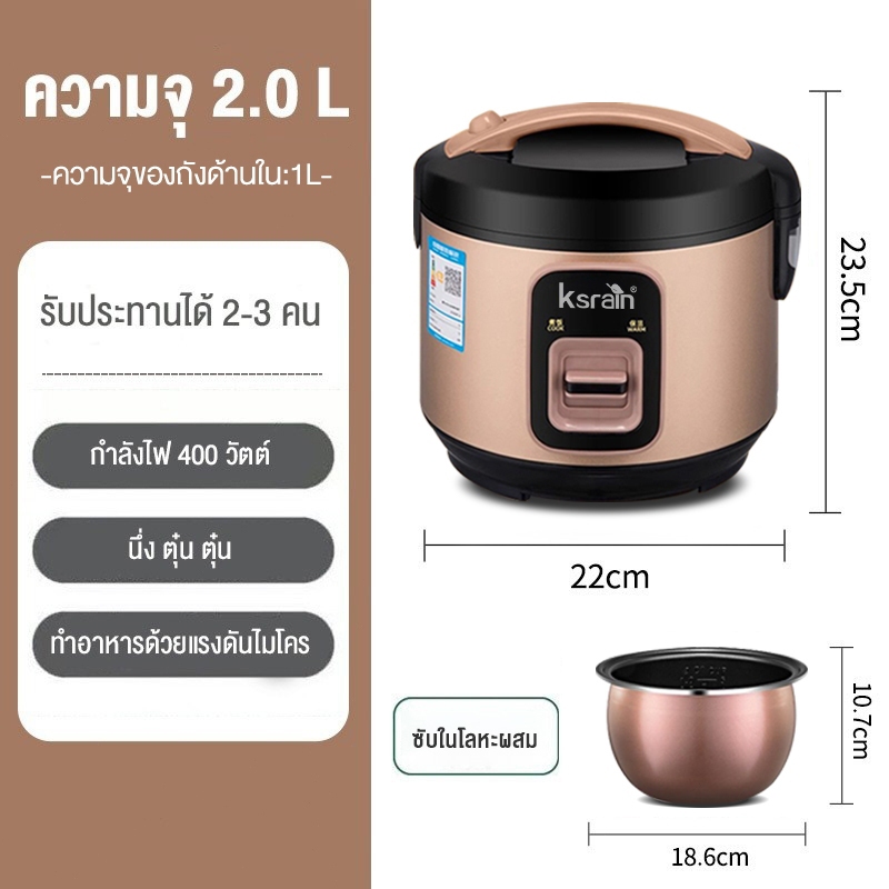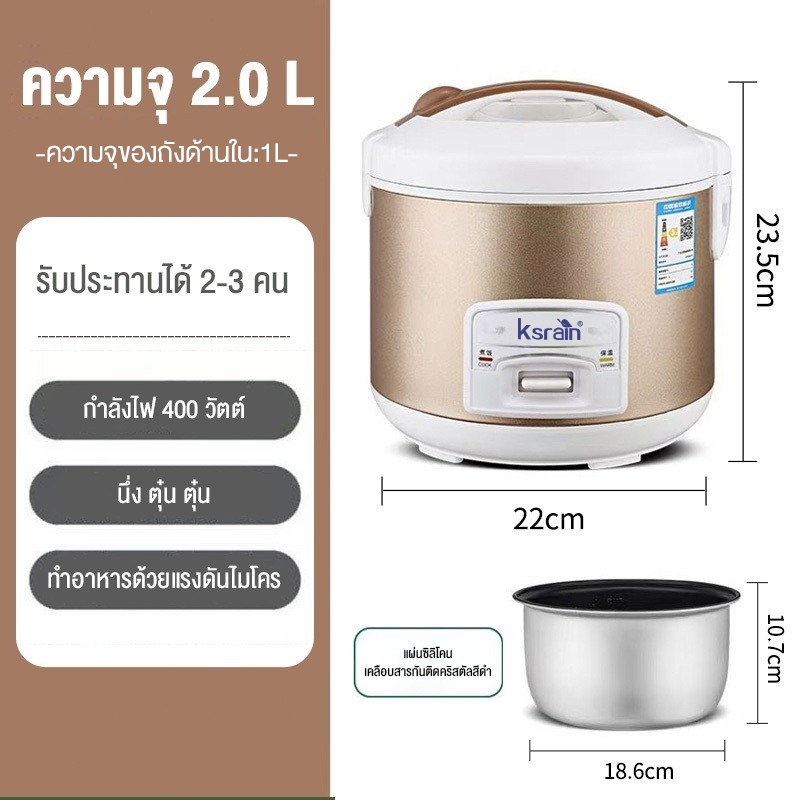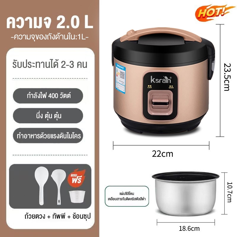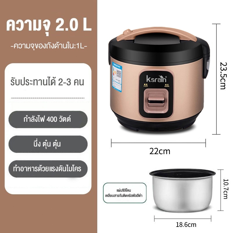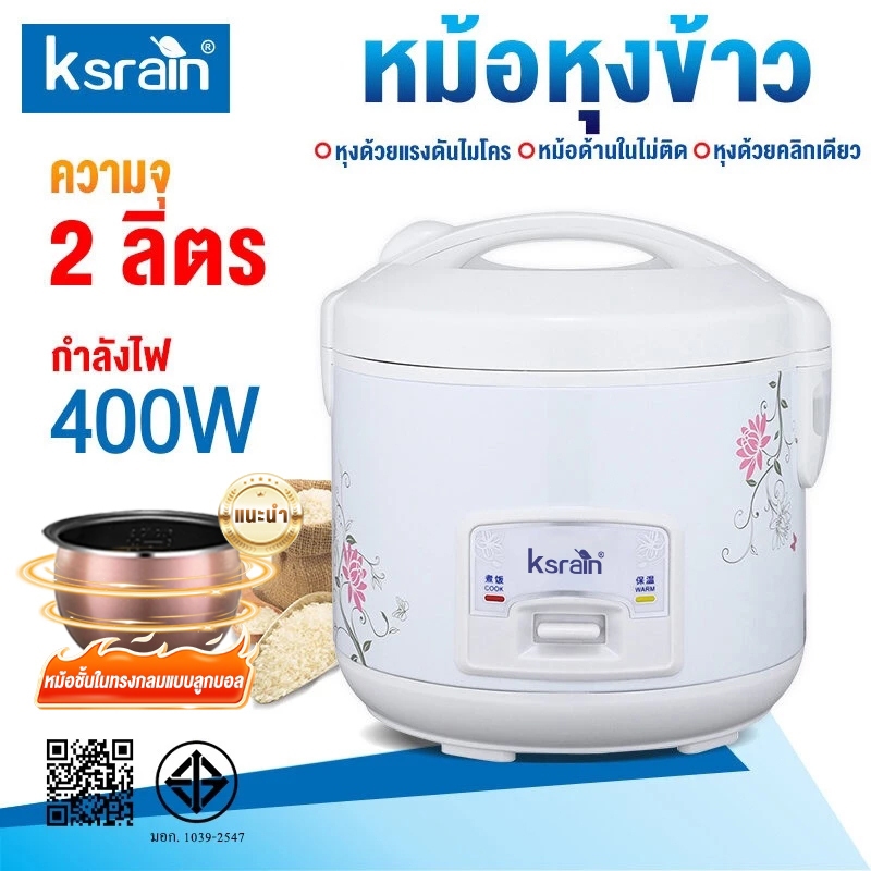 Ksrain หม้อหุงข้า ว หม้อหุงข้าวถูกๆ หุงข้าวเล็ก หม้อหุงข้าวไฟฟ้า ขนาด 2 ลิตร อุ่นทิพย์ รุ่น Rice cooker