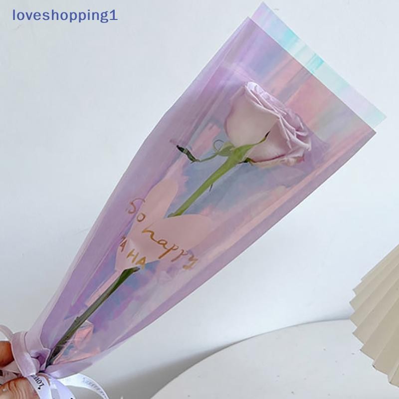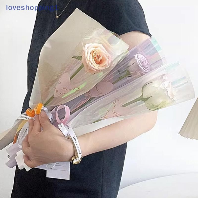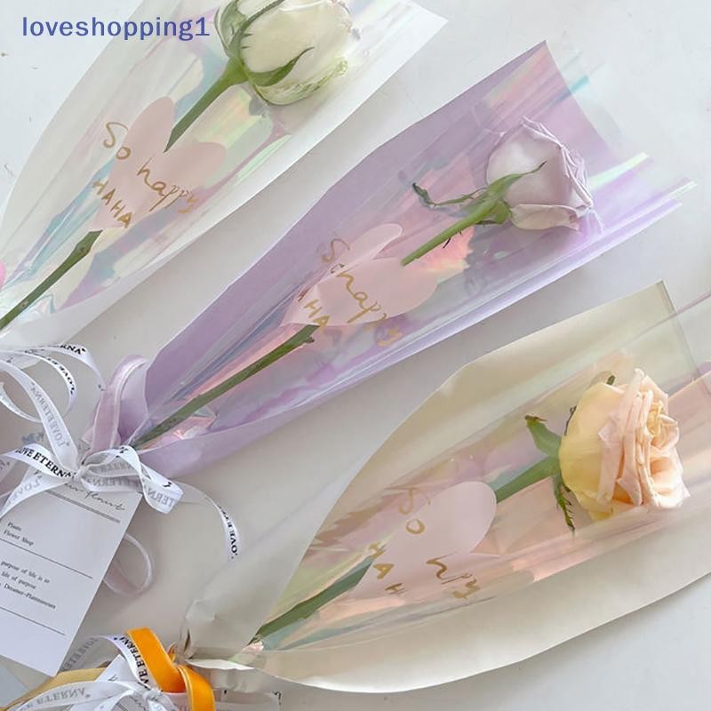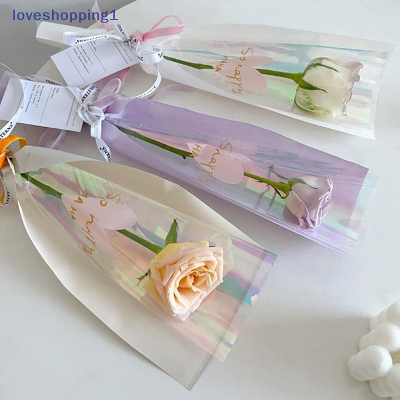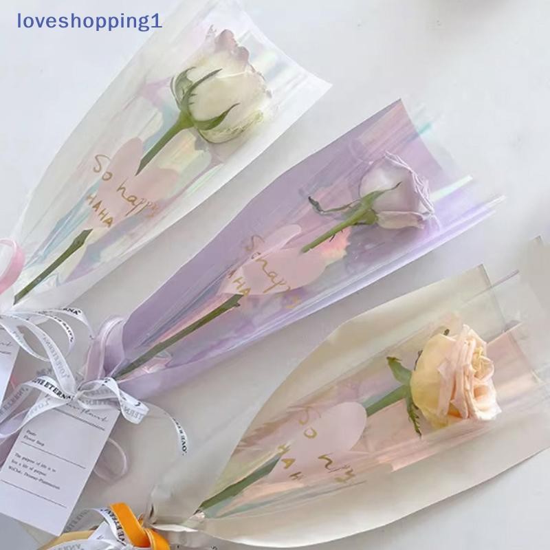 [Love shopping] 10 ชิ้นแขนกุหลาบเดี่ยวถุงห่อดอกไม้ถุงบรรจุภัณฑ์ช่อดอกไม้ใส Cellophane ห่อดอกไม้สําหรับวันวาเลนไทน์ TH