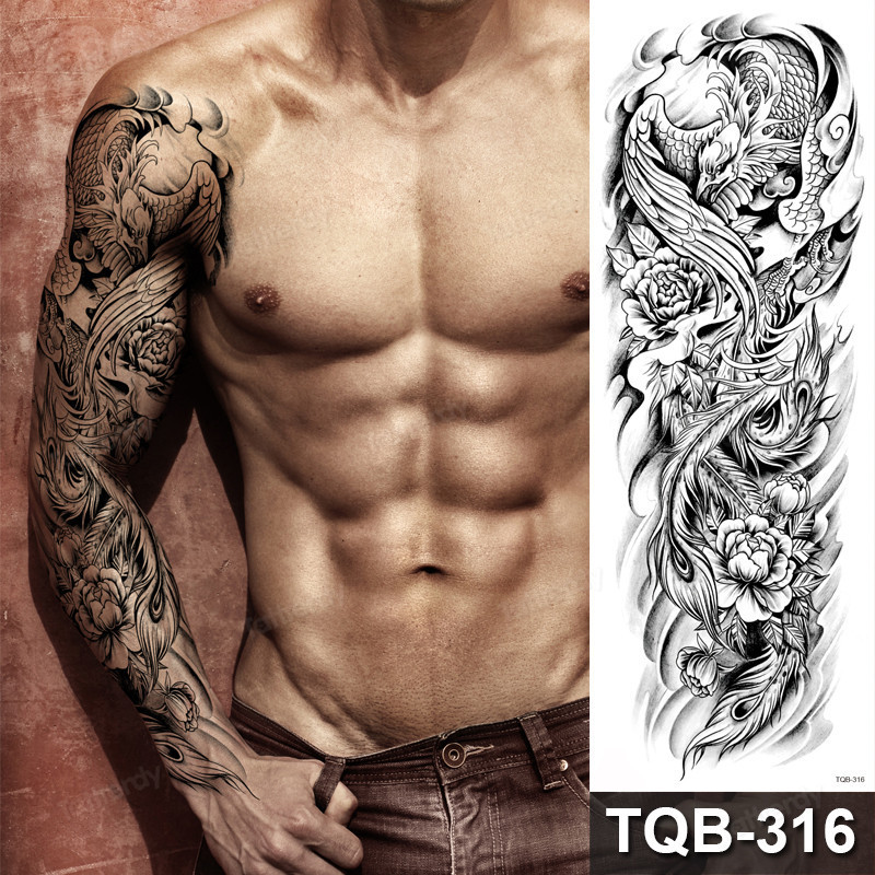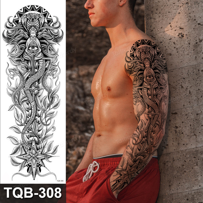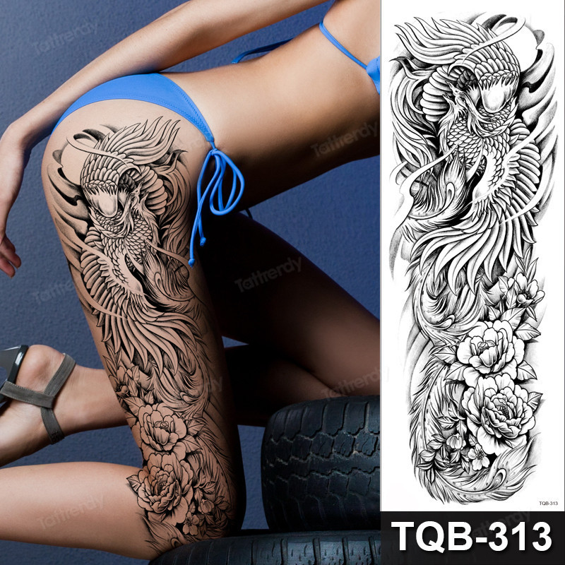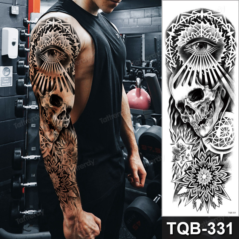 ขนาดใหญ่รอยสักชั่วคราวแขนเต็มขาขาต้นขาเซ็กซี่ร่างกายศิลปะสักสติกเกอร์สีดําป่าหมาป่ากะโหลกโทเท็มสักผู้ใหญ่