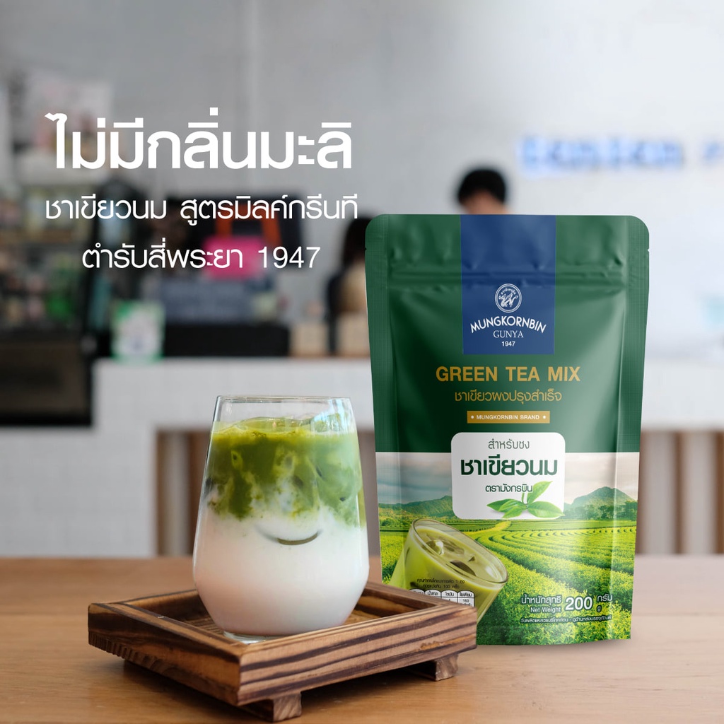 ชาเขียวนม มังกรบิน ไม่มีกลิ่นมะลิ ขนาด 200กรัม ชาเขียวมังกรบิน