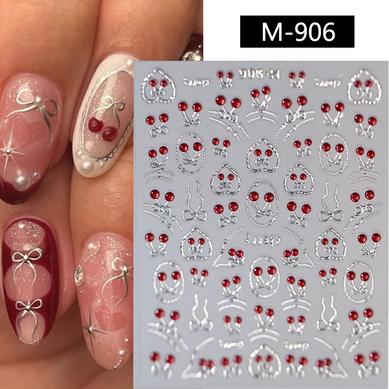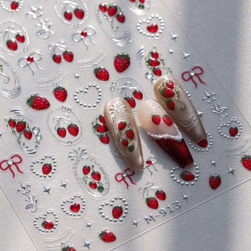Ur SUGAR ผลไม้หวานสดสตรอเบอร์รี่ Cherry Bowknot Love Heart 5D สติ๊กเกอร์ติดเล็บตกแต่งกาวในตัวตกแต่งเล็บรูปลอก