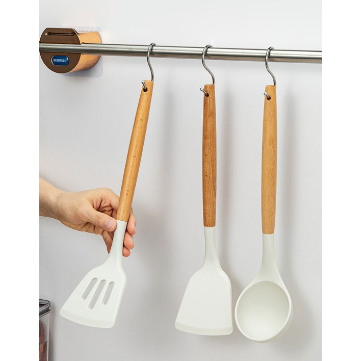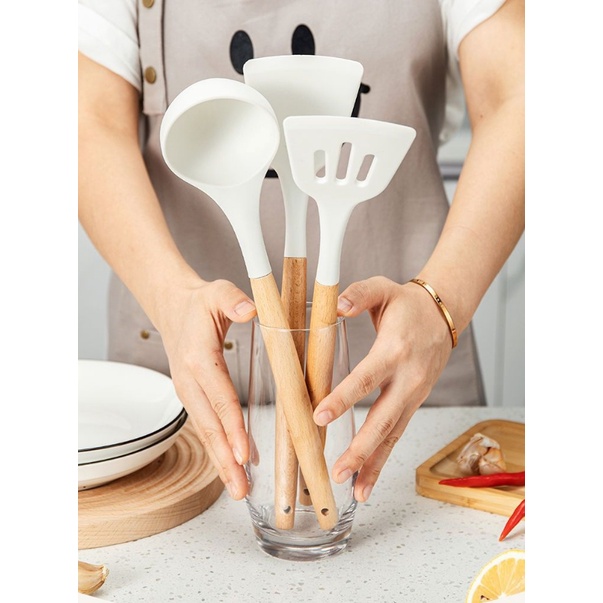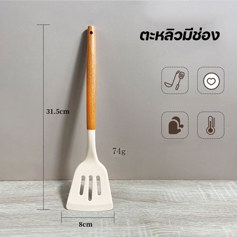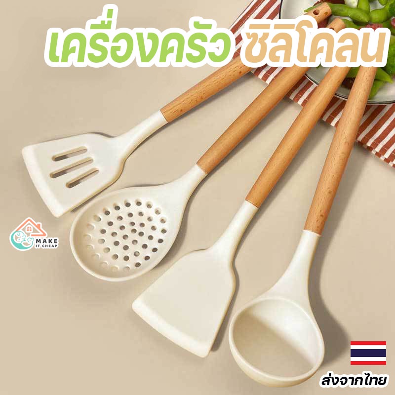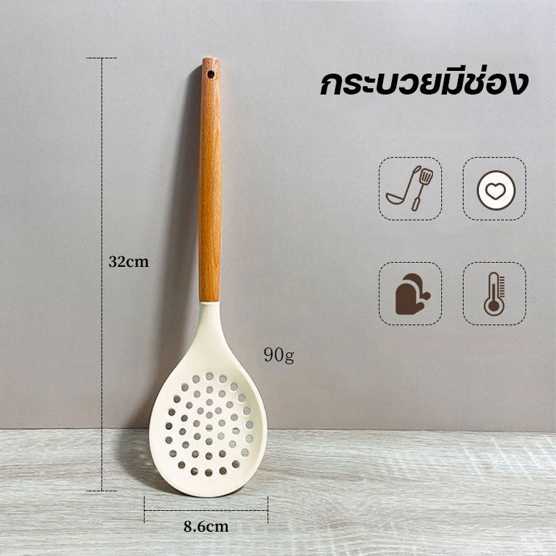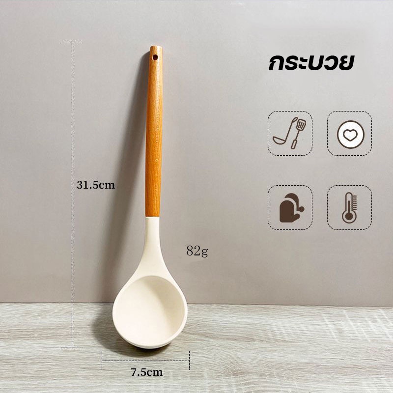 อุปกรณ์ทำอาหาร ตะหลิว กระบวย ทัพพี ซิลิโคน ด้ามไม้ ทนความร้อน ปลอดภัย ไม่ทำลายกระทะ เครื่องครัวคุณภาพ ขายแยกชิ้น