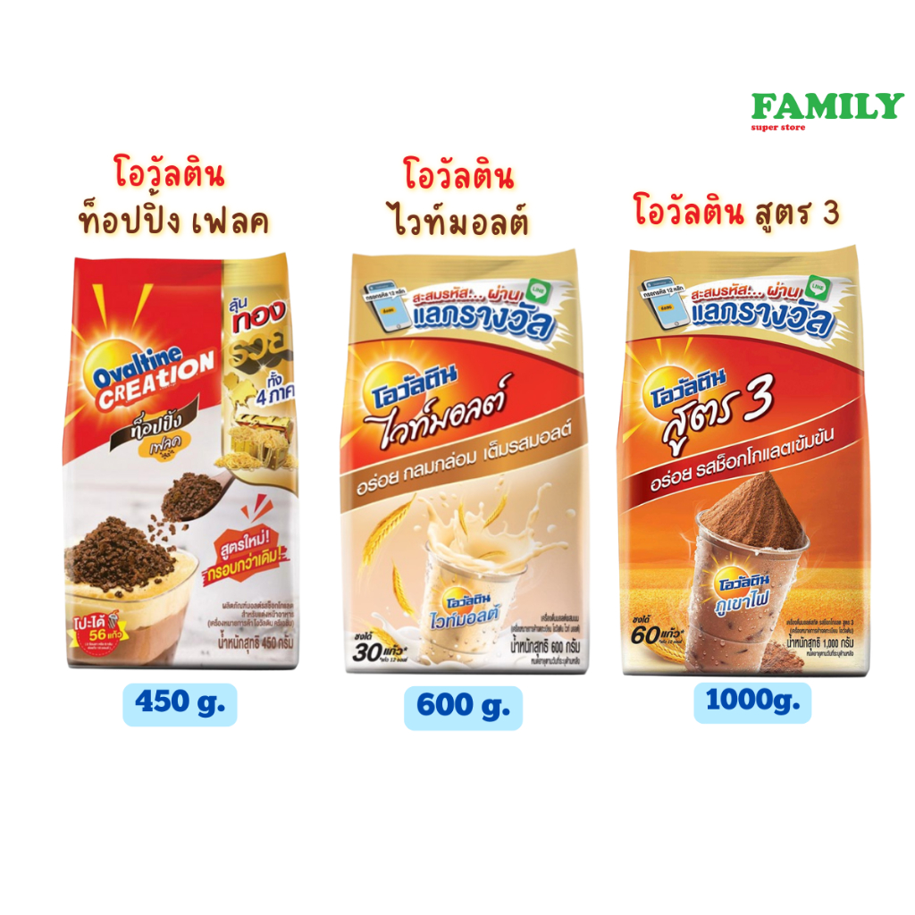 Ovaltine โอวัลติน ท็อปปิ้งเฟลค 450g/โอวัลติน ไวท์มอลต์ 600g/สูตร3 1000g
