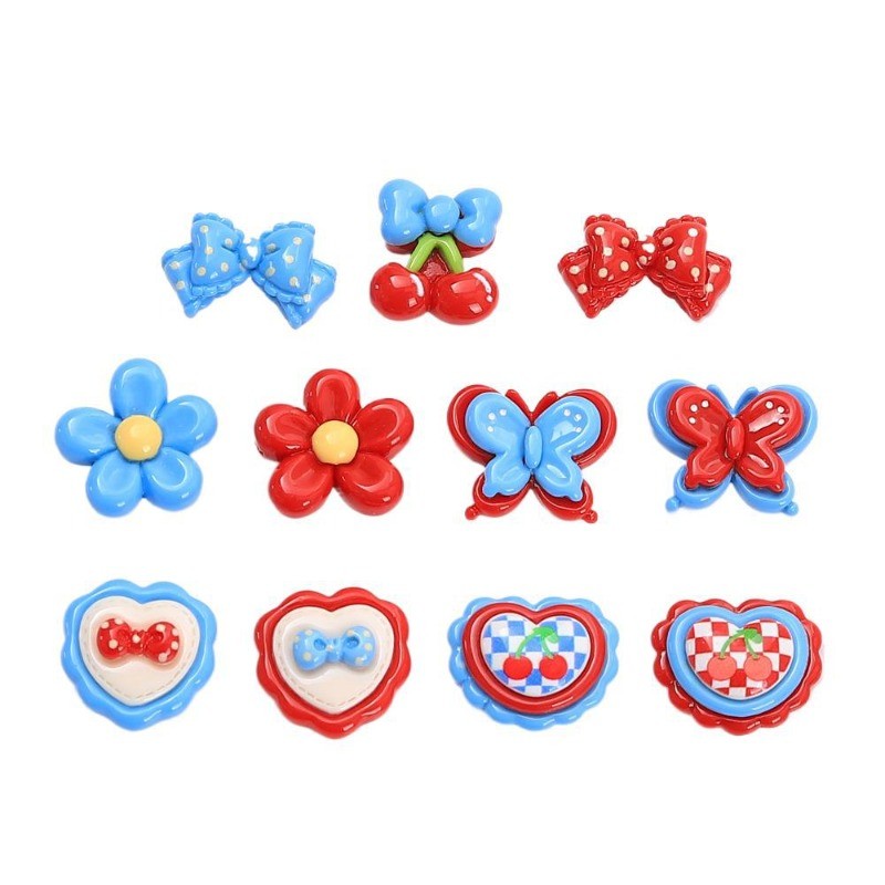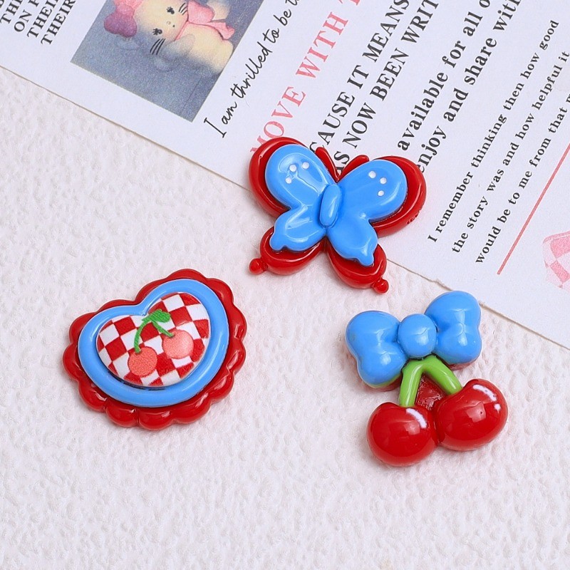 การ์ตูนน่ารักหัวใจโบว์ Jibits 3D เรซิ่น แมวกระต่าย ผีเสื้อเชอร์รี่ สำหรับตกแต่งรองเท้า DIY_patch_สำหรับรองเท้าเด็กสาว