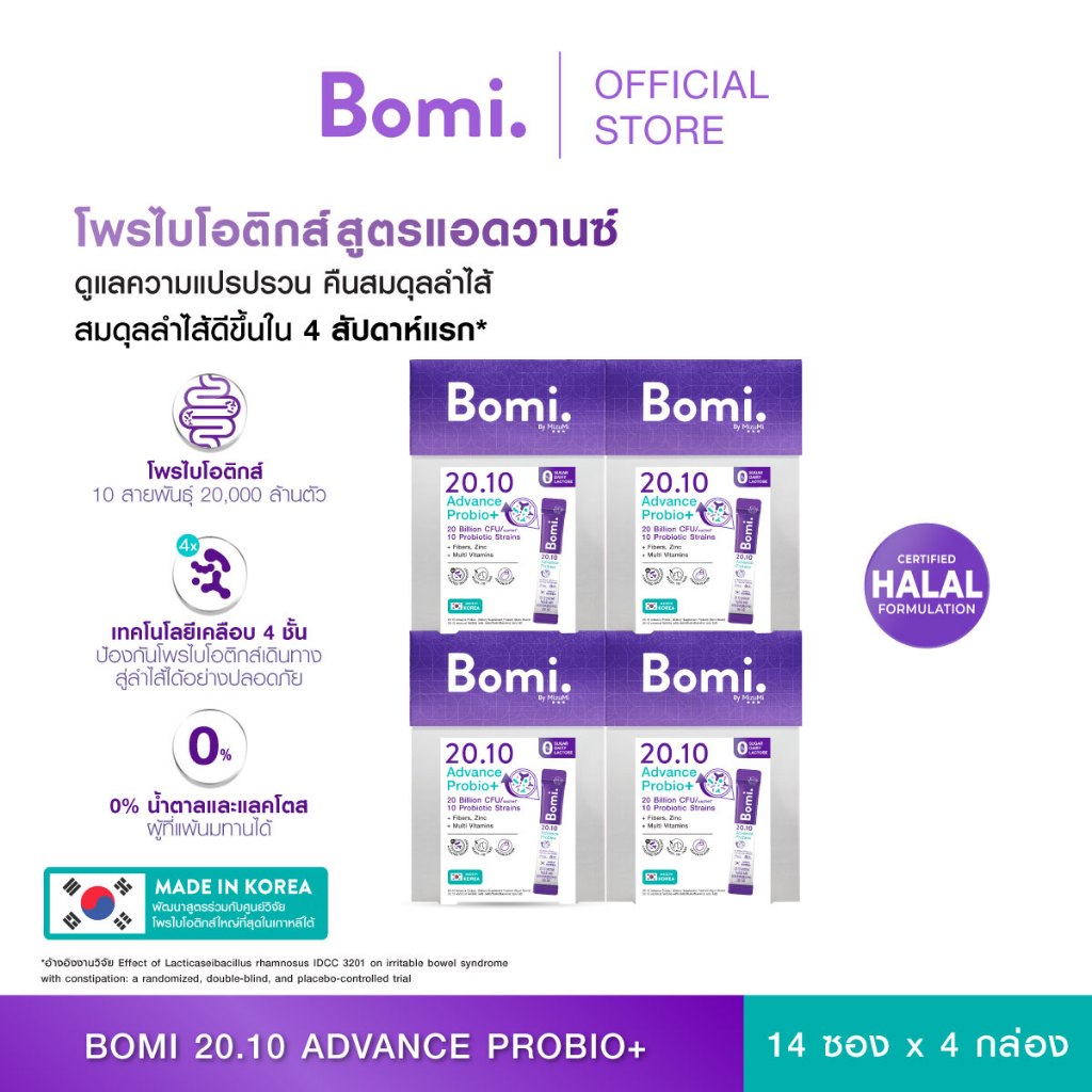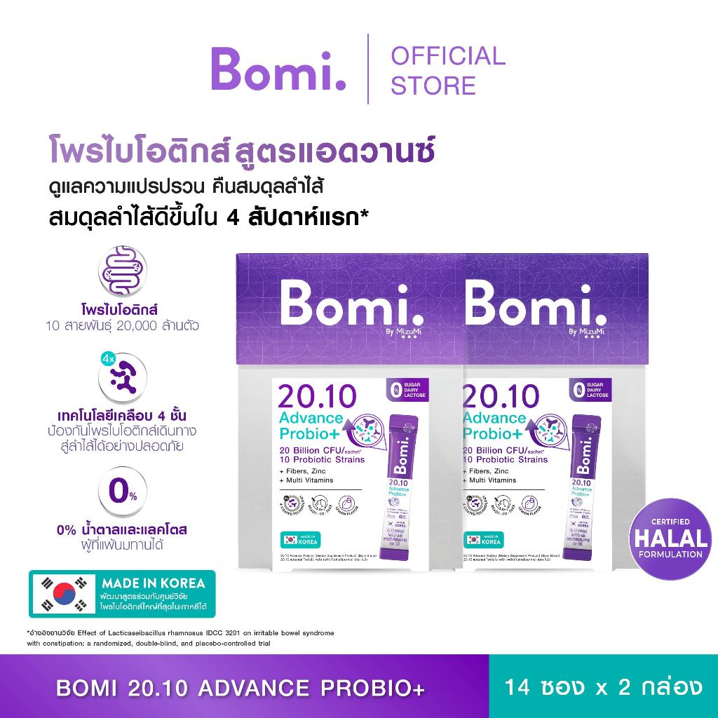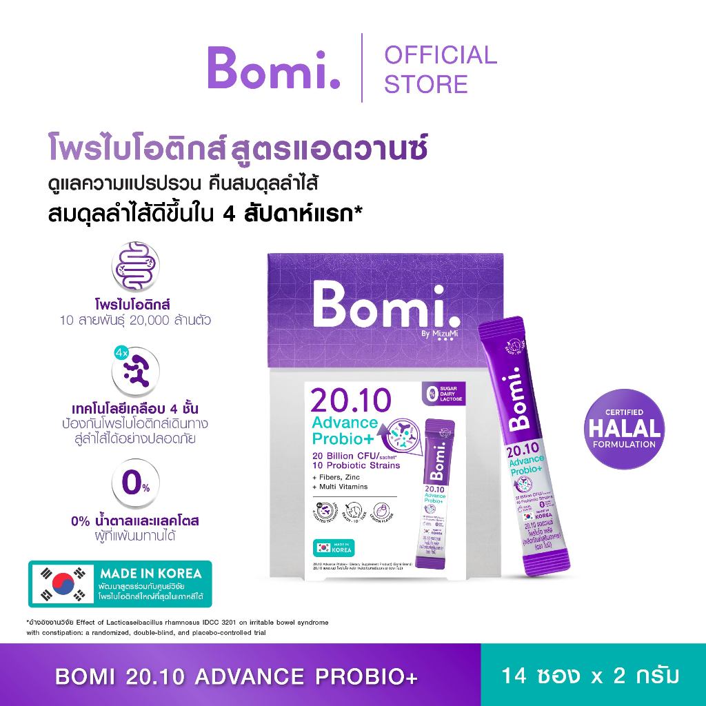 Bomi 20.10 Advance Probio+ (14x2g) โพรไบโอติกส์สูตรแอดวานซ์ ปรับอาการแปรปรวน คืนสมดุลลำไส้
