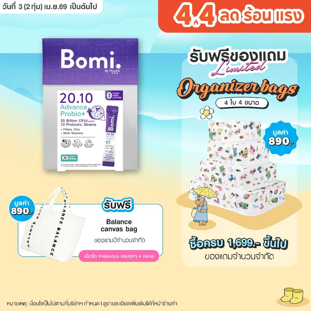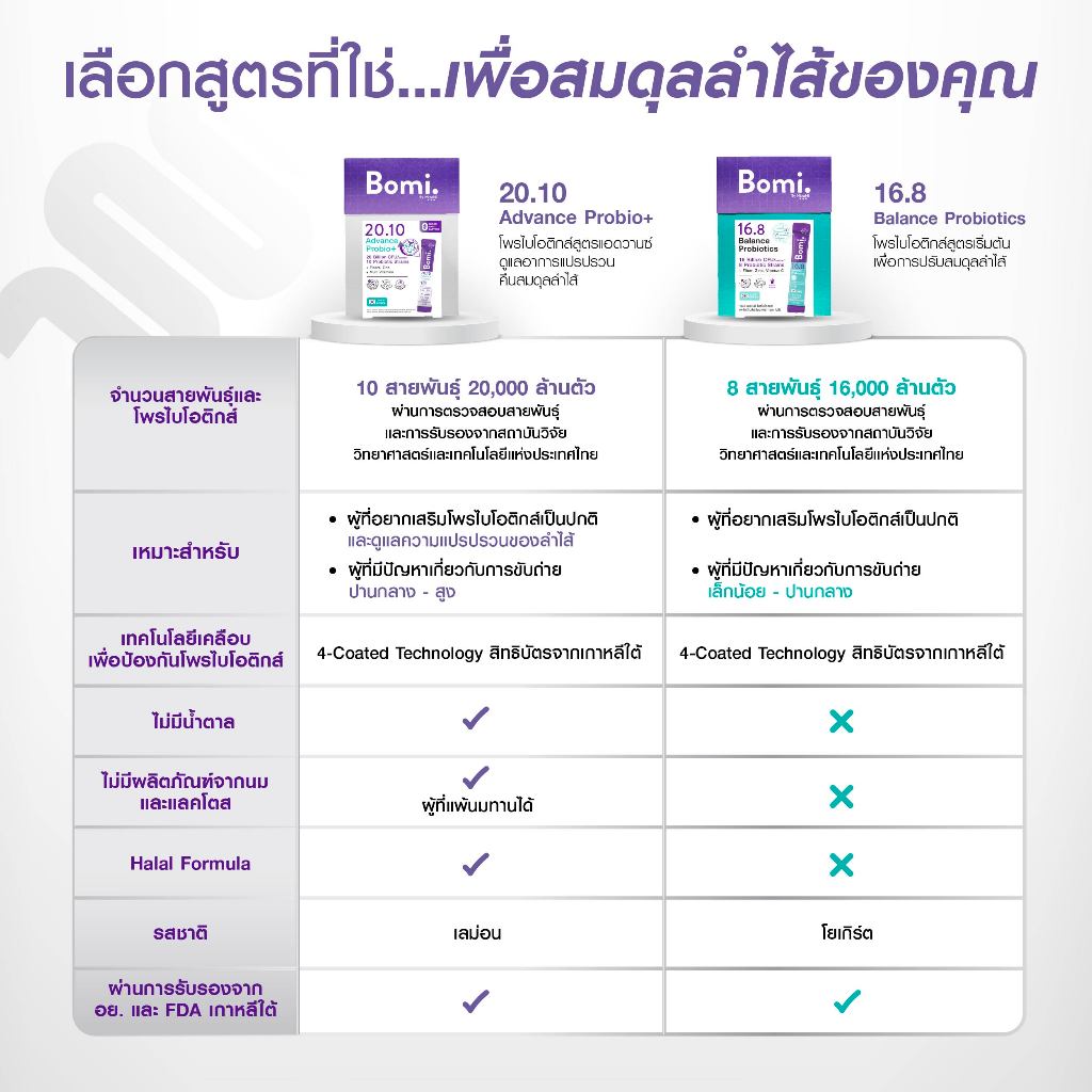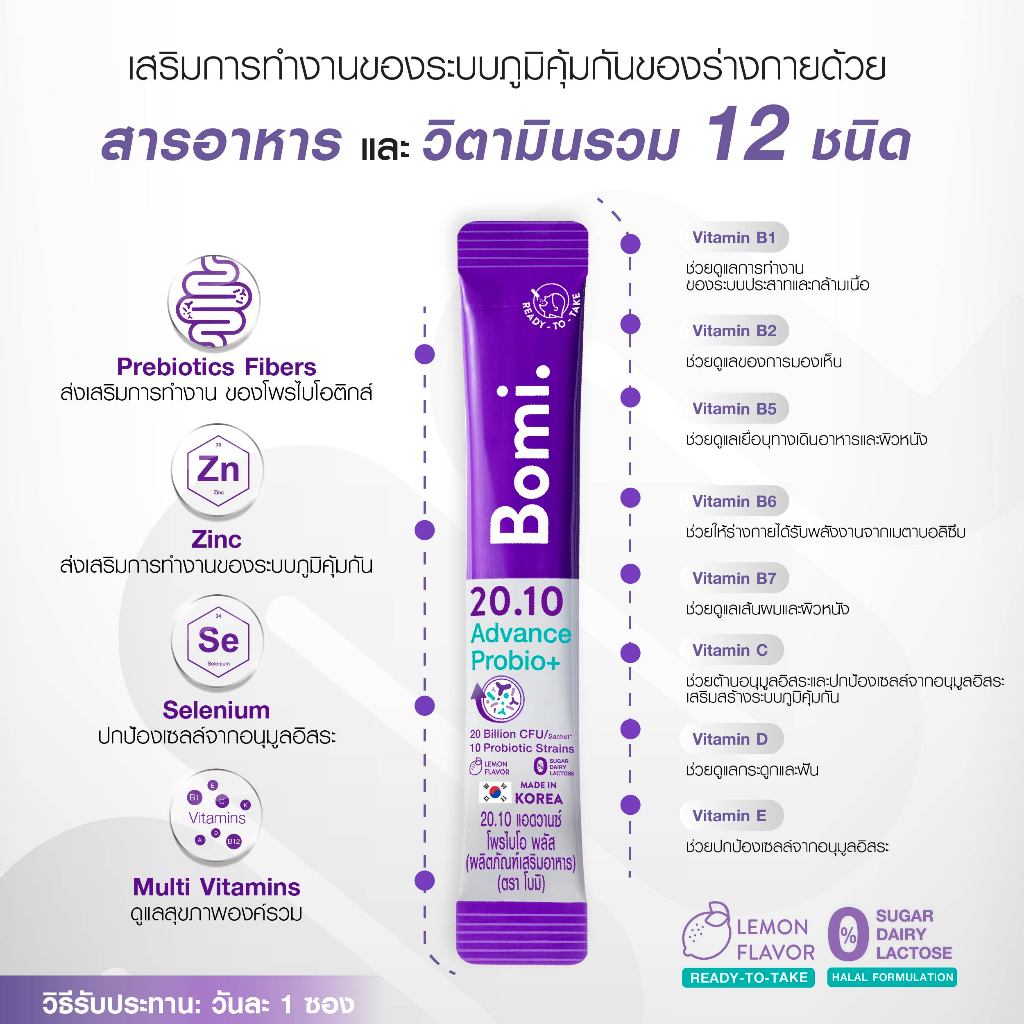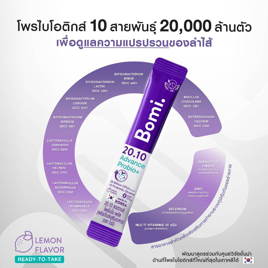 Bomi 20.10 Advance Probio+ (14x2g) โพรไบโอติกส์สูตรแอดวานซ์ ปรับอาการแปรปรวน คืนสมดุลลำไส้
