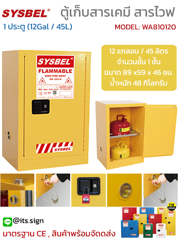 ตู้เก็บสารเคมี ขนาด 12 แกลอน / 45 ลิตร สีเหลือง