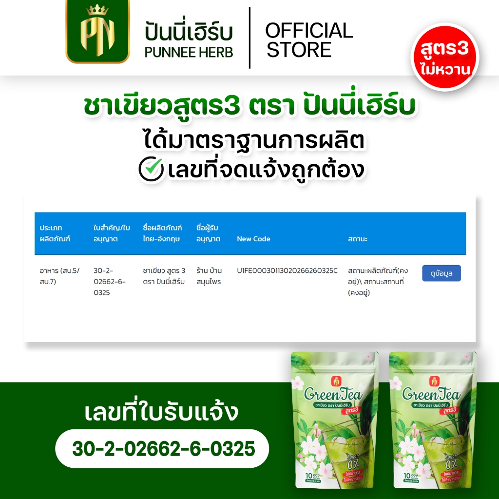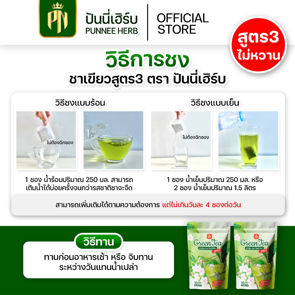 ชาเขียวสูตร3 {โปร 100 ห่อ} ไม่มีหญ้าหวาน ไม่มีน้ำตาล