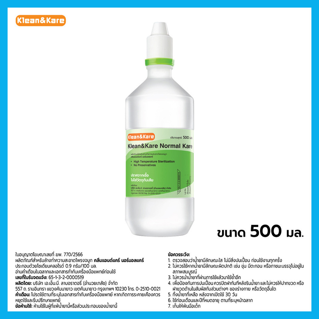 Klean&Kare Normal Kare 500ml คลีนแอนด์แคร์ ผลิตภัณฑ์สำหรับล้างทำความสะอาดโพรงจมูก.
