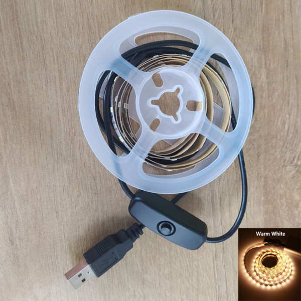 Dc5v แถบไฟ LED USB SMD3528 1 เมตร 2 เมตร 3 เมตร 4 เมตร 5 เมตร พร้อมเทปสวิตช์ไฟ LED สีขาวอบอุ่น สําหรับตกแต่งพื้นหลังทีวี ห้องนอน