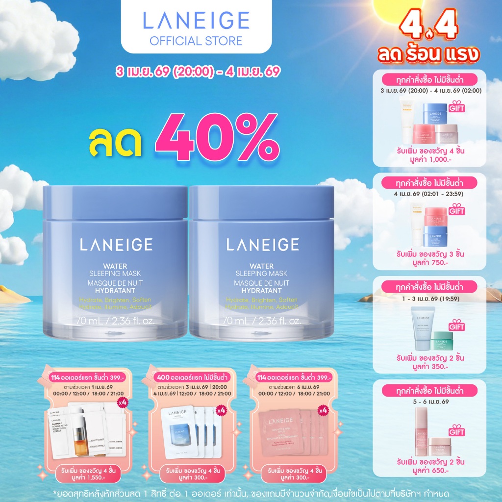 LANEIGE Water Sleeping Mask 70ml.x2 อีเอ็กซ์