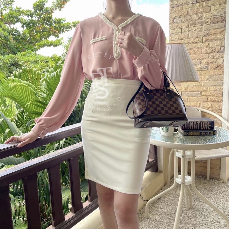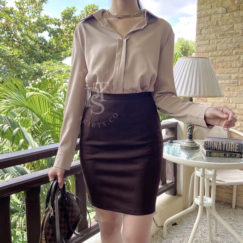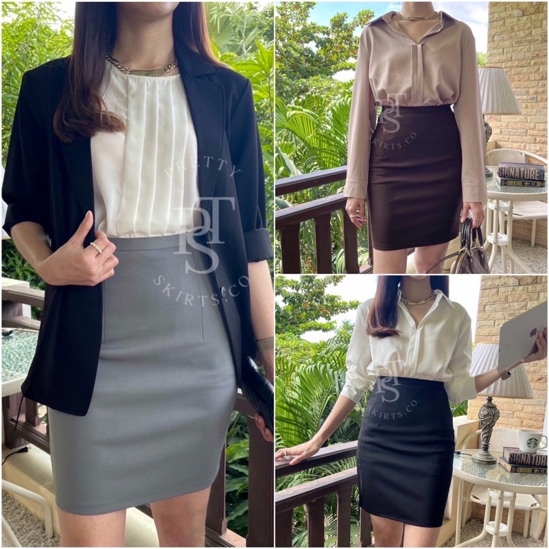 กระโปรงทำงานผ้าโรเชส ทรงดินสอ ยาว 20 นิ้ว มีซับใน