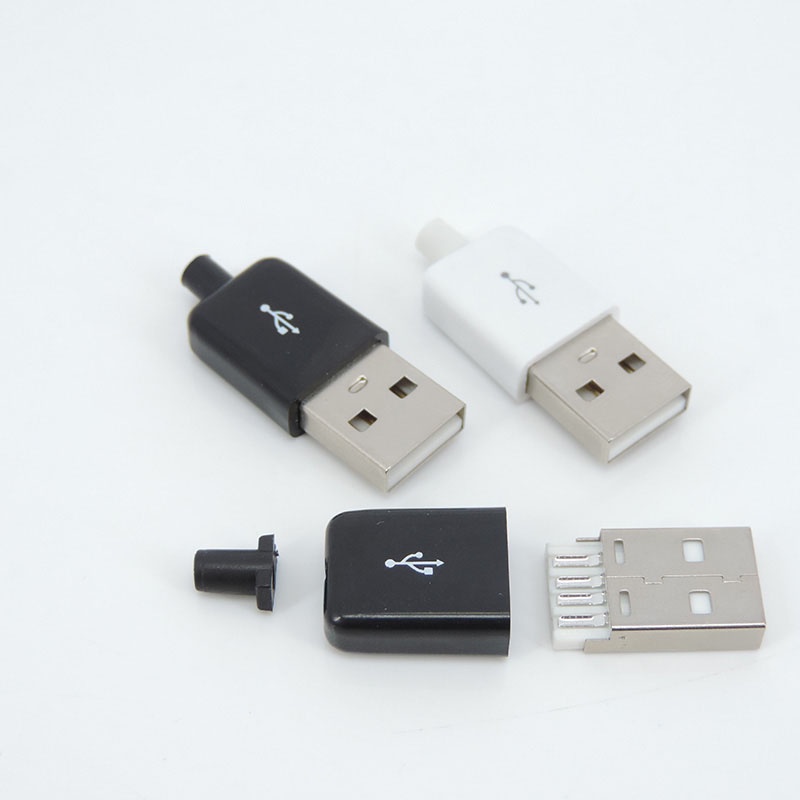 10 ชิ้น USB ประเภท A ชาย 4 ขาปลั๊ก DIY ซ็อกเก็ตสีดําสีขาวพลาสติก USB 2.0 Type-A การบัดกรี DIY ชุด THK2